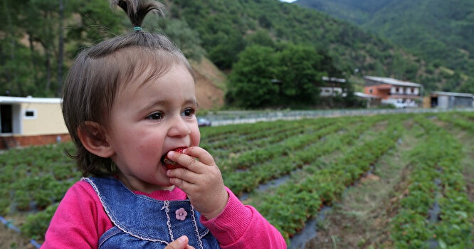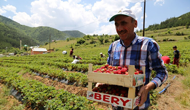 Gümüşhane’de Tarım ve Orman Müdürlüğü’nün İl Özel İdaresi kaynaklarıyla desteklediği organik çilek bahçesi hem köylü kadınlara ekmek kapısı oldu hem de köydeki herkesin çilek dikmesine neden oldu.