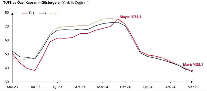 "Enflasyondaki düşüş süreci devam etmektedir" denilen sunumda şu değerlendirmeler de yer aldı: "Geçmişe endeksleme eğilimi güçlü kalemler, hizmet enflasyonunu yukarı çekmektedir. Mal enflasyonundan sonra hizmet enflasyonundaki düşüş de belirginleşmektedir. Enflasyonun ana eğiliminde ilk çeyreğe özgü bir yükseliş gözlenmiştir."