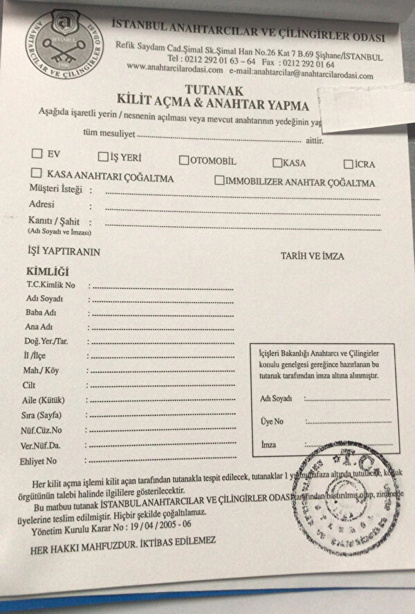 Öncelikle açılacak kapı ve kilit için kilit açma tutanağının doldurulması şart. Bu tutanakta ilgili eşya ve malın bulunduğu yerin adresinden kişinin kimlik bilgilerine kadar çok sayıda bilginin doldurulmasının zorunlu kılındığı alanlar yer alıyor.