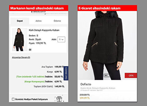 Bazı ürünlerin online ticaret siteleri ile markalarının kendi sitelerinde yer alan fiyatlar arasında dahi ciddi bir fark olduğu görüldü. İndirim etiketiyle çıkılan kimi ürünlerde eski fiyatın üstü çizilerek yine aynı fiyatın yazılması ise tüketiciyi aldatan ilanlarda gelinen son nokta oldu.