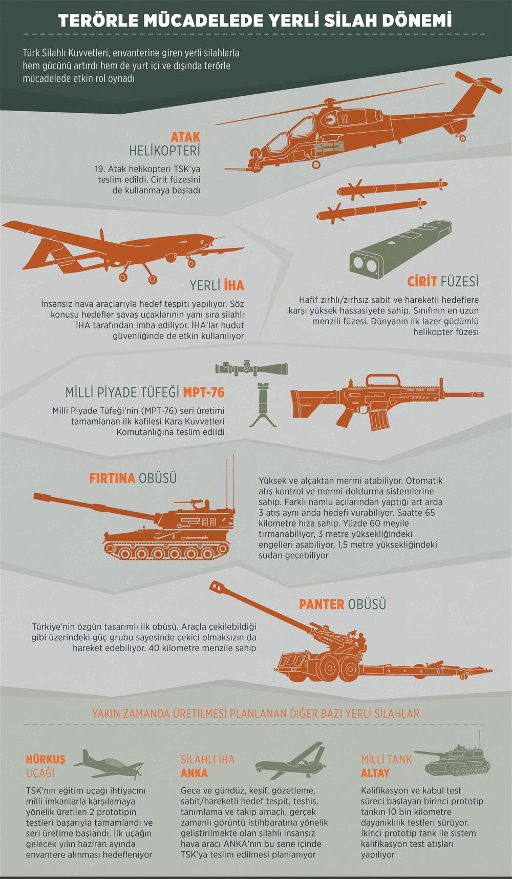 NATO'nun en büyük ikinci ordusu olma özelliğini taşıyan TSK, envanterine giren yerli silahlarla hem gücünü artırdı hem de yurt içi ve dışında terörle mücadelede etkin rol oynadı.