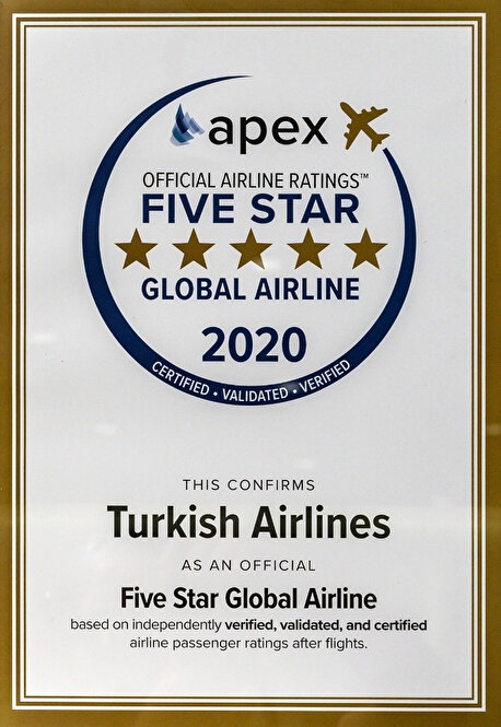 APEX-IFSA'da "2020 Yılının Beş Yıldızlı Küresel Havayolu" ödülüne THY layık görüldü. Havayolu şirketleri koltuk konforu, kabin servisi, yiyecek ve içecek, eğlence ve Wi-Fi kategorilerinde beş yıldız üzerinden değerlendirildi. Değerlendirme sonucunda bayrak taşıyıcı THY üst üste üçüncü kez beş yıldız ortalaması ile ödüllendirildi.
