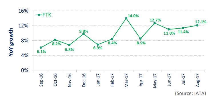 Uluslararası hava kargo trafiği, Ağustos ayında yıllık bazda yüzde 12,1 artış gösterdi. Bir önceki aya göre de 7 puanlık bir arış yaşandı. Küresel ekonomide büyüme dalgası nakliye trafiğine de yansıdı.