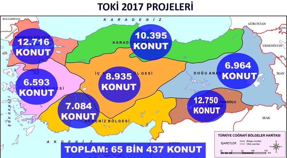 TOKİ tarafından 2017 yılında Doğu Anadolu'da yapılacak 6 bin 964 konut için projeler şu şekilde: