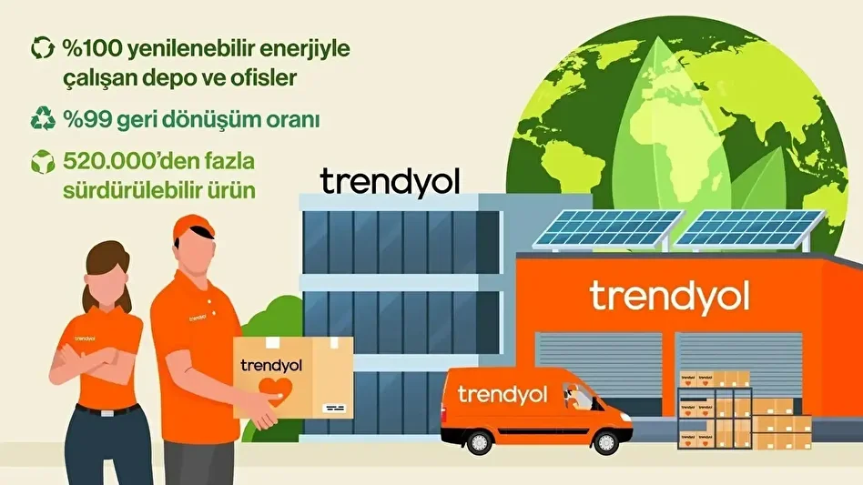 Trendyol, uzun vadeli çevresel yol haritasında da somut taahhütler ortaya koyuyor. Şirket, kendi operasyonlarında 2040’a, tüm iş ortakları ve tedarikçilerini kapsayan değer zincirinde ise 2050’ye kadar karbon nötr olmayı hedefliyor. Ambalaj ve atık yönetiminde tüm lojistik merkezlerinde sıfır atık sertifikasyonu almayı ve perakende ambalaj malzemelerinin tamamını sertifikalı kaynaklardan sağlamayı planlıyor. Sürdürülebilir üretimde ise 2030’a kadar ürünlerin yüzde 20’sinin sertifikalı ve patentli malzemelerden üretilmesi hedefleniyor.