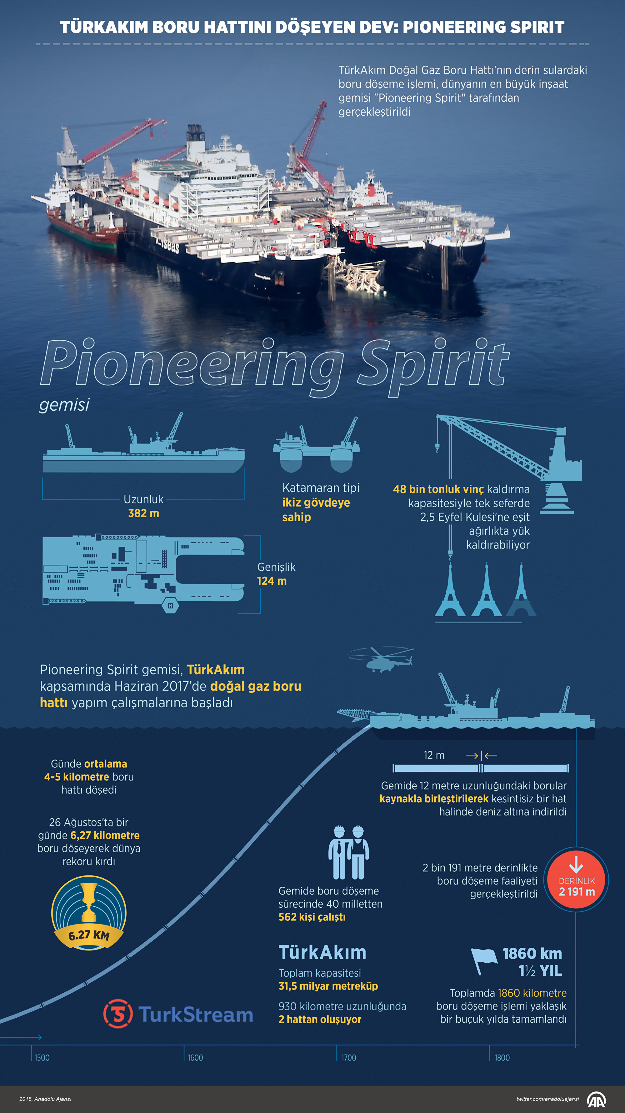 - Rus gazını Türkiye'ye, Türkiye üzerinden de Avrupa'ya taşıyacak TürkAkım doğal gaz boru hattı her biri yıllık 15,75 milyar metreküp kapasiteye sahip iki hattan oluşacak.