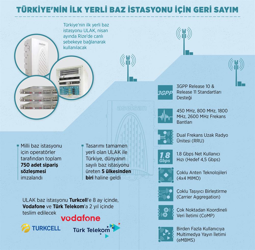 Söz konusu baz istasyonunun bakım, onarım ve yedek parça desteğinin ASELSAN, Netaş ve Argela tarafından sağlanacağını dile getiren Bayız, ULAK baz istasyonunun Turkcell'e 8 ay içinde, Vodafone ve Türk Telekom'a 2 yıl içinde teslimatlarının yapılacağını söyledi.