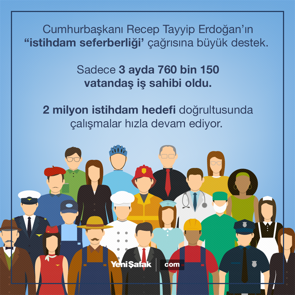 "Sayın Cumhurbaşkanımızın istihdam seferberliği çağrısına cevap veren, ülkesine inanan, ekonomimize güvenen tüm işverenlerimize teşekkür ediyorum."