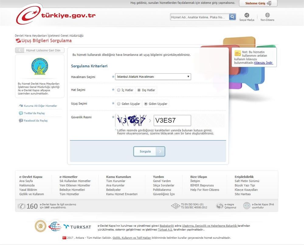 Artık güncel uçuş bilgilerine 35 milyonun üzerinde kullanıcısı bulunan e-devlet kapısından da ulaşabiliyor yolcularımız.
