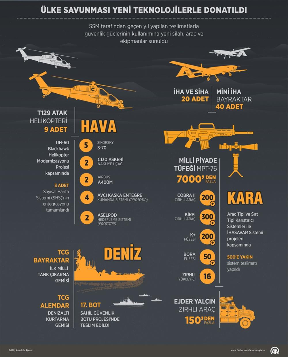 Modern bir savunma sanayisinin geliştirilmesi ve güvenlik güçlerinin ihtiyaç duyduğu silah, araç ve gereçlerin temini için faaliyet gösteren Savunma Sanayii Müsteşarlığı (SSM), geçen yıl yoğun bir teslimat programı izledi.