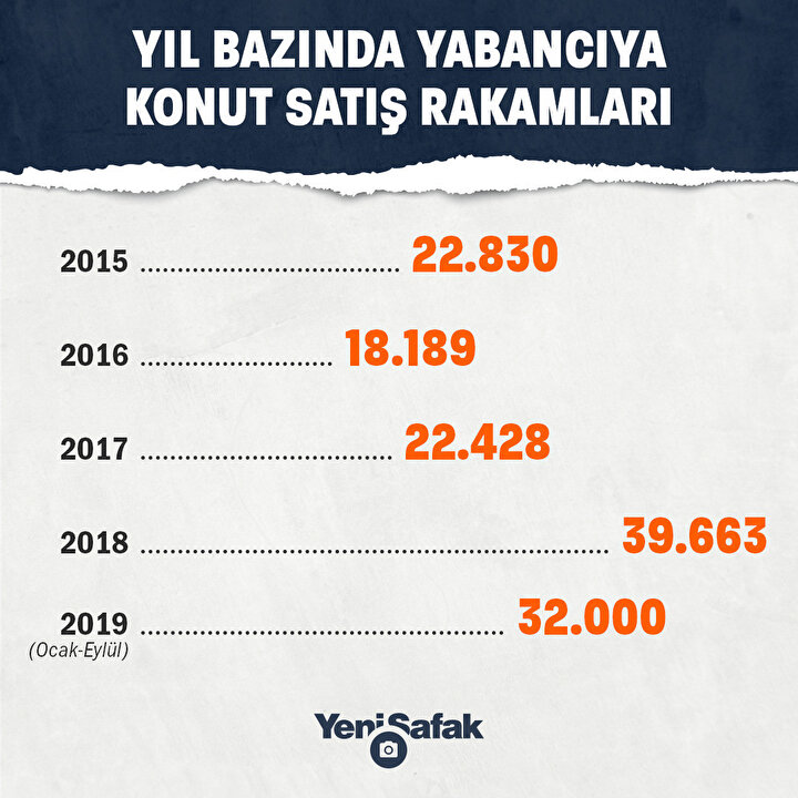 Oturum izni için tanınan 1 milyon dolarlık limitin 250 bin dolara çekilmesinin ardından 2018 yılında 40 bin bandına dayanan yabancıya konut satışı, 2019'un ilk 9 ayında tarihi bir rekor ile şimdiden 32 bin adet seviyesini yakalamış durumda.