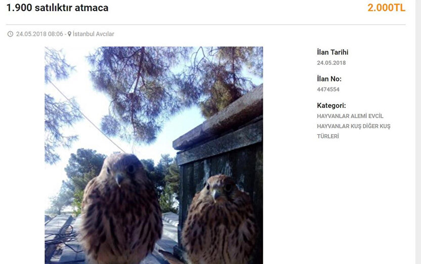 Diğer yandan internet ilanlarında satıcıların, 'Detaylı bilgi için arayın', 'Satılık atmaca yavrusu. Keyfe keder satılık, eğitilmek için tam yaşı', 'Yavru eğitime hazır. Ele omuza geliyor' ifadeleri dikkat çekti.