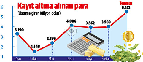 Son ödemeler dengesi tablosu, yastık altı dövizlerin sisteme girişinin sürdüğünü ortaya koydu. Temmuzda 5 milyar 473 milyon dolar, ocak-temmuz döneminde ise 24 milyar 347 milyon dolarlık para kayıtlı hale geldi. Bu rakam geçen yılın ilk 7 ayında 10 milyar 208 milyon dolardı.