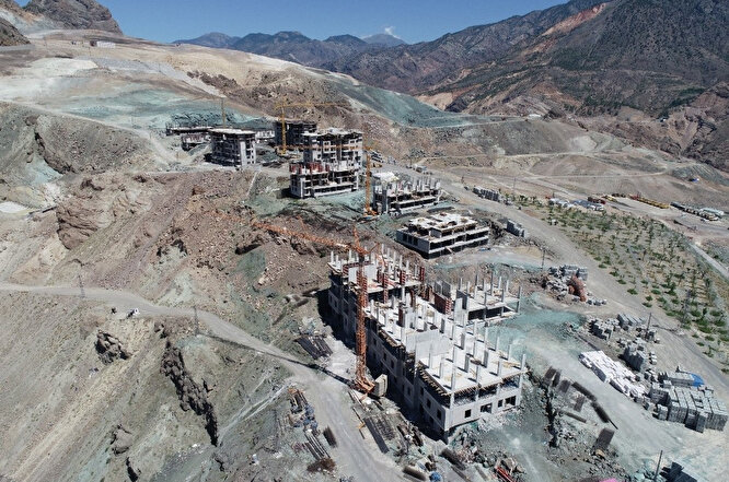 , ”1. bölgede (Sakut Vadisi) 1.ihale kapsamında Hükümet Konağı, İlçe Emniyet Müdürlüğü, Adliye, PTT, Kütüphane, İlçe Gençlik ve Spor Müdürlüğü, Kapalı Spor Salonu, Merkez Cami ve Müftülük Binası, Öğretmenevi ile 16 Derslikli Ortaokul inşaatlarının yapımı devam etmekte olup; işin fiziksel gerçekleşmesi yüzde 93 seviyesindedir. Yine 1. bölgede 2.ihale kapsamında ise 25 Yataklı Hastane, Belediye Hizmet Binası, 2 adet Ticaret Merkezi, 69 adet Dükkan, 518 adet konut inşaatlarının yapımı devam etmekte olup; işin fiziksel gerçekleşmesi yüzde 15 seviyesindedir.