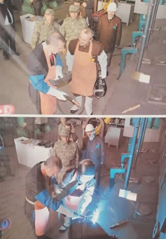 Tarkan Zengin, Cumhurbaşkanı Erdoğan'ın geçtiğimiz yıllarda 244'üncü Fırtına Obüsünün gövde kaynağını yaptığını anın fotoğrafını da paylaştı.