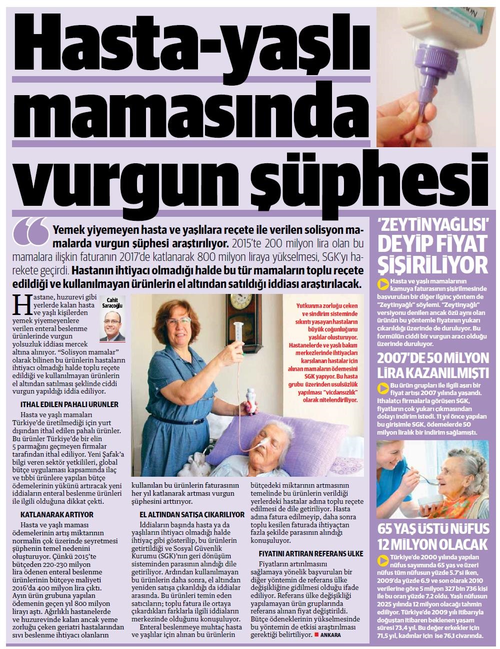 Yeni Şafak’ın önceki gün gündeme getirdiği ‘Hasta-yaşlı mamasında vurgun şüphesi’ başlıklı haber sektörde ses getirdi. Enteral ürün gruplarında hastanın ihtiyacı olmadığı halde adına talep açılmasından, kullanılmayan ürünün el altından ikinci kez satışına kadar ciddi suistimallerin yapıldığını anlatan sektör temsilcileri, bu ürünlerin yerli üretimi konusunda da ise ithalatçı firmalara önemli fırsatlar sağlandığını dile getirdi.