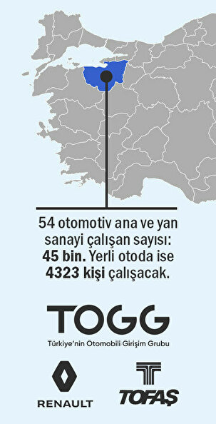 22 milyar liraya inşa edilecek ve doğrudan 4 bin 323 kişinin istihdam edileceği dolaylı olarak ise 20 bin kişiye ekmek kapısı açacak yerli otomobilin fabrikası da araç gibi akıllı olacak. 2021 yılında üretimine başlanacak yerli otomobilin 2022 yılında tüm ülkede şarj altyapısı hazır hale getirilerek yollara çıkması bekleniyor.