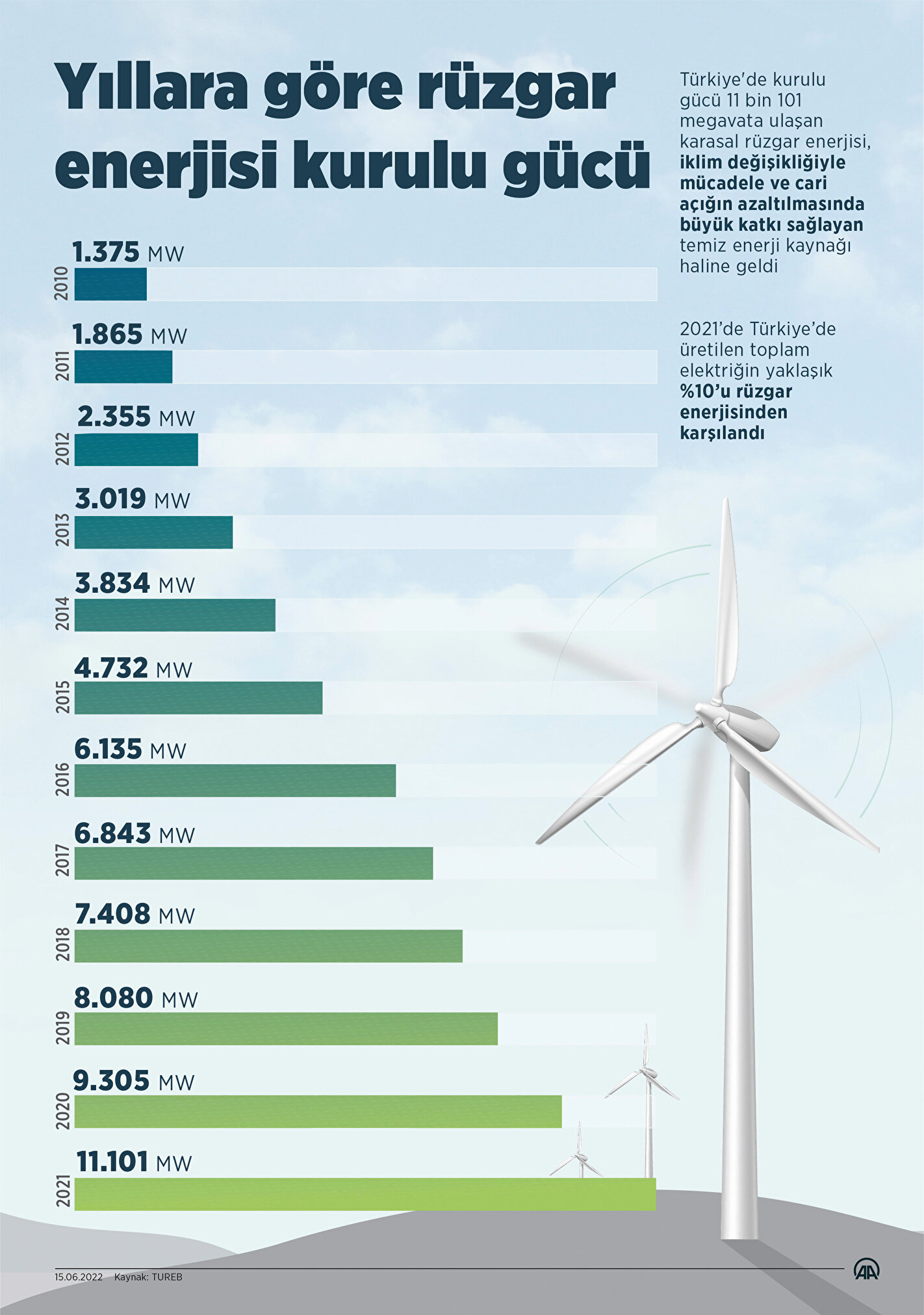Türkiye, rüzgar türbini üretimi konusunda kendi mühendislik ve modelleme yeteneğini geliştirdi. Rüzgar türbini aksamları üretiminde yerlilik yüzde 72’ye ulaşırken Türkiye’de üretilen rüzgar türbini aksamlarının yüzde 80’i ihraç edilir hale geldi.
