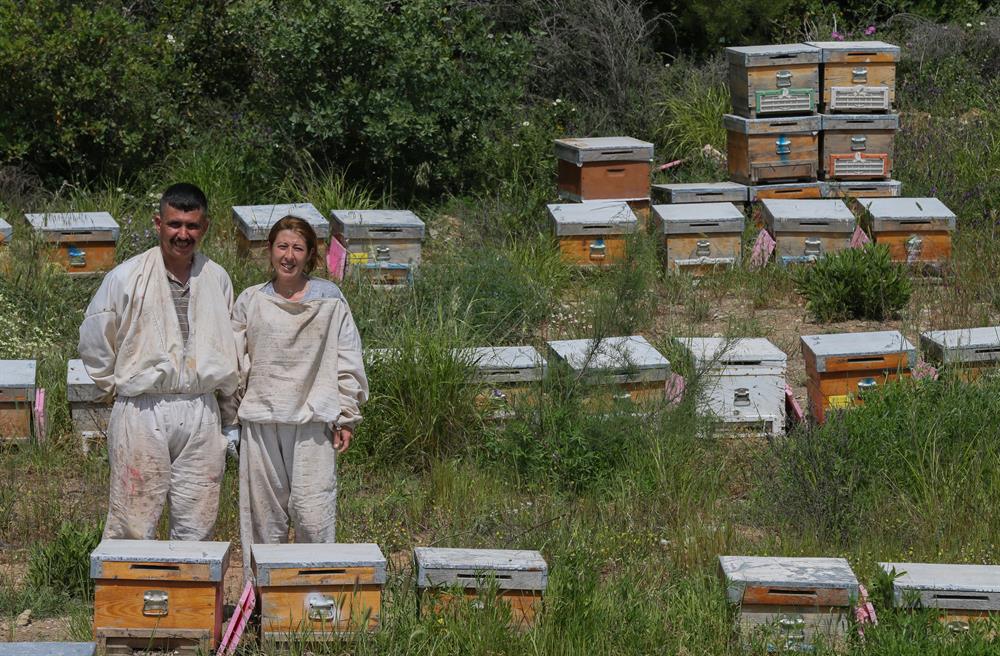 Devlet desteğiyle başladıkları arıcılıkta 45 olan kovan sayısını kısa sürede 450'ye çıkaran İzmirli çift, yılda 20 ton bal, kraliçe arı ve polen satışıyla 300 bin lira gelire ulaştı.
