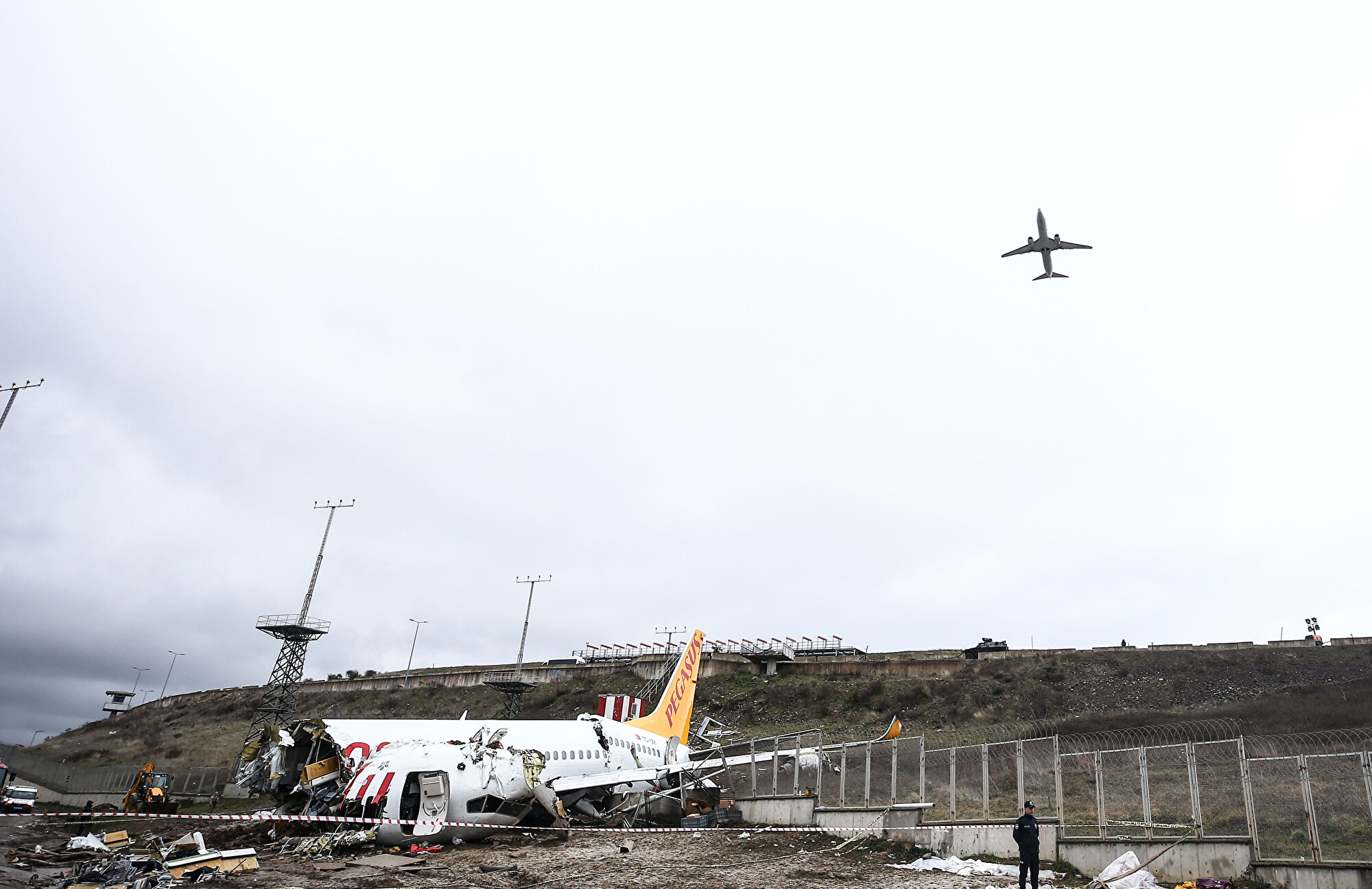 İzmir-İstanbul seferini yapan Pegasus Havayolları’na ait Boeing 737-800 tipi uçak, dün saat 18.30’da Sabiha Gökçen Uluslararası Havalimanı’na indikten sonra duramayarak pistten çıktı. 50 metre kadar sürüklenen uçak 30-40 metreden toprak zemine düştü. Uçak burun ve kuyruğa yakın kısımlarından kırılarak üçe bölündü ve yanmaya başladı. Meydana gelen kazada 3 kişi hayatını kaybetti, 180 kişi de yaralandı.