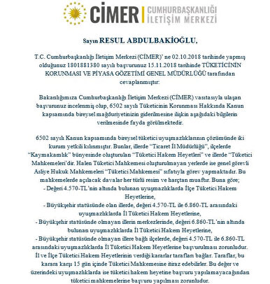 Ticaret Bakanlığı’nın TÜBİS diye bir şikayet sistemi olduğunu ve mağdurların buraya başvurması gerektiğini ayrıca hakem heyetlerinin de belli bir rakama kadar şikayetlere yönelik harekete geçebildiğine de dikkat çeken Eroğlu, bakanlığın denetimler sonrası her bir sözleşme için ayrı para cezası uyguladığını da kaydediyor.