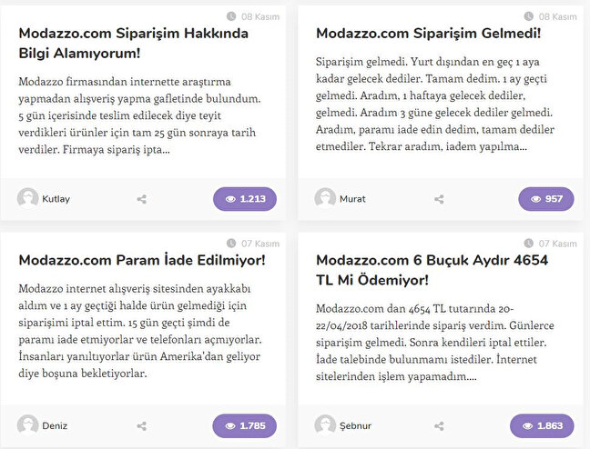 2012 yılında hizmete açılan ve geçtiğimiz Ocak ayında online tarafta faaliyet göstererek lüks giyim markalarının ürünlerini nerdeyse yarı fiyatına sattığını iddia eden Modazzo.com’dan alışveriş yapan yüzlerce kişi mağdur oldu.