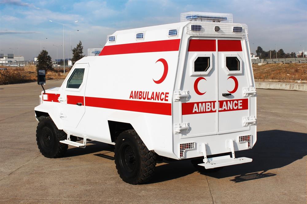 - 4x4 zırhlı ambulans, yüksek riskli bölgeler için ulaşım, ilk yardım ve hastaların nakli amacıyla Ford F550 araç şasisi üzerine tasarlanıp donatıldı. Ambulansın geniş iç hacmi sayesinde ayakta operasyon gerçekleştirerek hastalara müdahale edilebiliyor.
