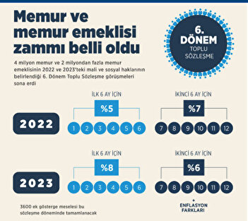 Aynı dönemde SSK ve Bağ-Kur emekli aylıklarında ise yüzde 42,35 artış sağlandı. Bu çerçevede aile yardımı ödeneği dahil en düşük memur maaşı 6 bin 429 liradan 9 bin 105 liraya, en düşük memur emekli aylığı 4 bin 289 liradan 6 bin 78 liraya yükseldi.