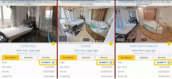 İstanbul Şişli'de bir daireye ilişkin farklı fiyatlarla verilen ilanlar, emlak piyasasındaki fiyat artışlarının doğallığına dair soru işaretlerini gündeme getirdi. Aynı konut için üç ayrı emlak ofisinin 47 bin, 49 bin ve 53 bin TL olarak belirlediği kira bedelleriyle ilan yayınladığı tespit edildi.