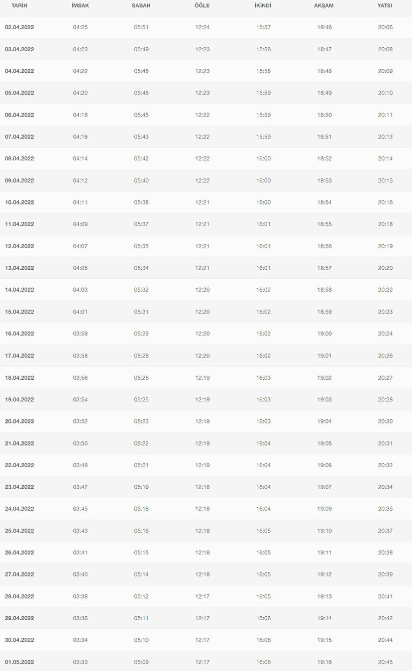 Ramazan ayı Müslümanlar için rahmet ve mağfiret ayıdır. Müminlerin bir ay boyunca farz olan oruç ibadetini yerine getireceği 2022 Ramazan ayı 2 Nisan Cumartesi günü başlayacak. Peki Erzurum için ilk iftar ve ilk sahur vakti saat kaçta? İşte 2022 Erzurum imsakiyesi...