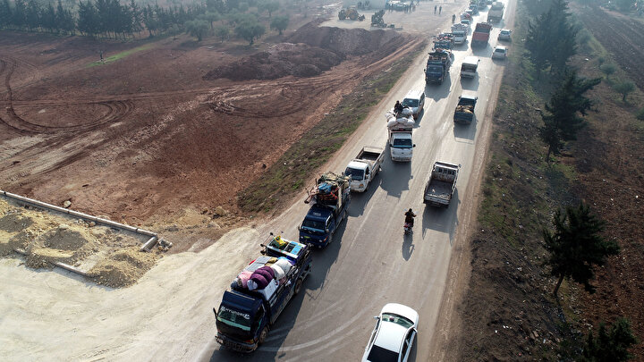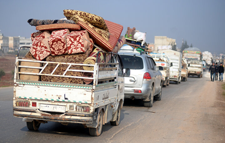 Rusya destekli Esad rejiminin son günlerde İdlib'in güneydoğusuna saldırılarını artırması nedeniyle evlerini terk eden yaklaşık 120 bin Suriyeli, eşyalarını da taşıdıkları uzun araç konvoylarıyla Türkiye sınırına yakın bölgelere ve terörden arındırılan Fırat Kalkanı ile Zeytin Dalı bölgelerine göç ediyor. Yerleşecek mekan bulamayan çok sayıda sivil, sınıra yakın yerlerdeki tarım arazilerine çadır kurmaya başladı.