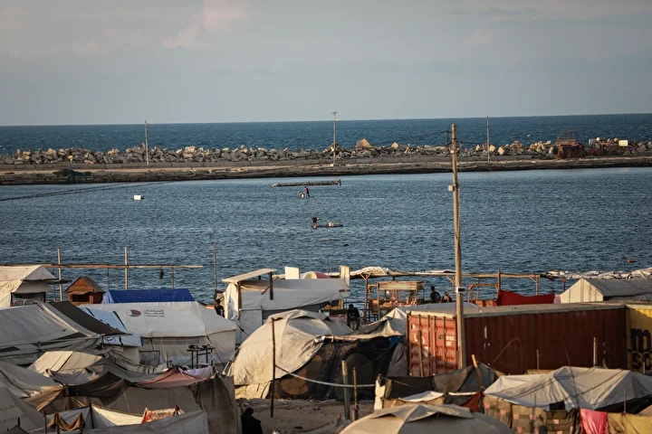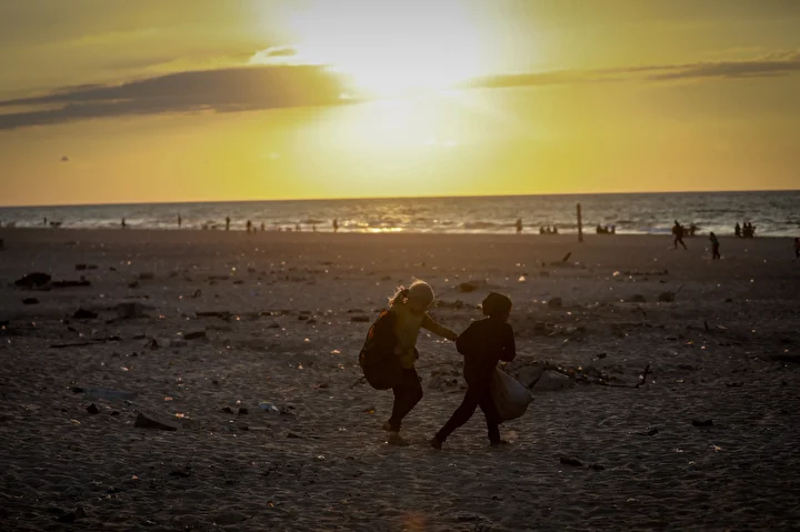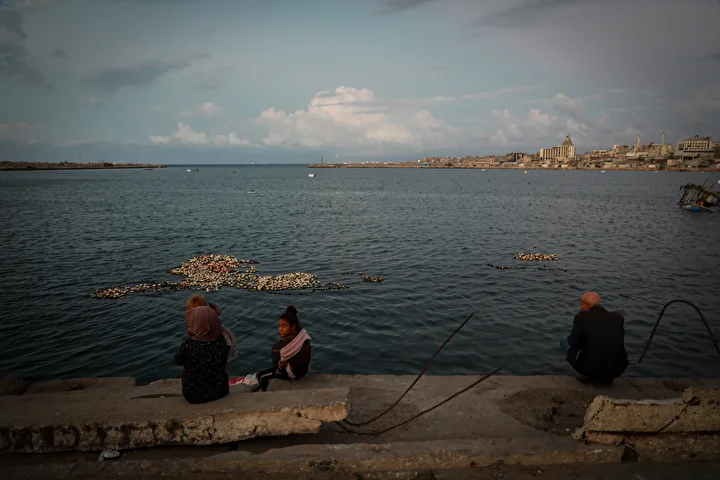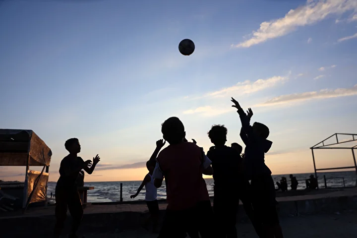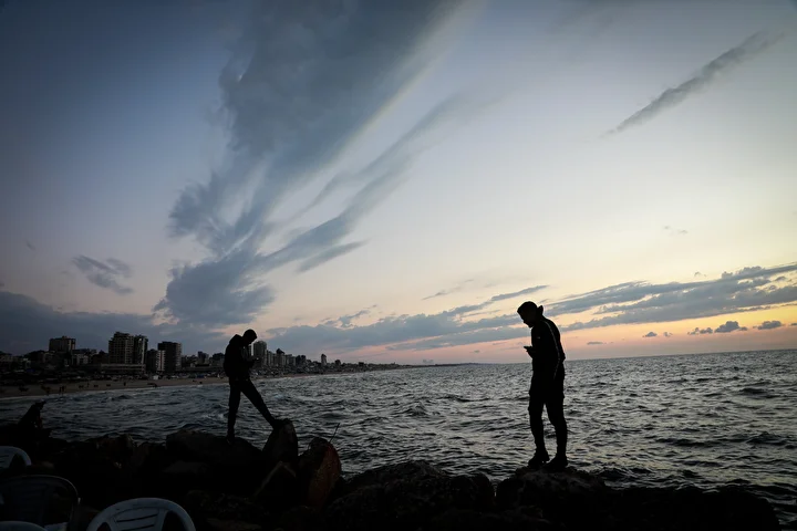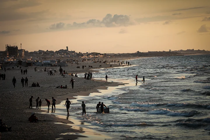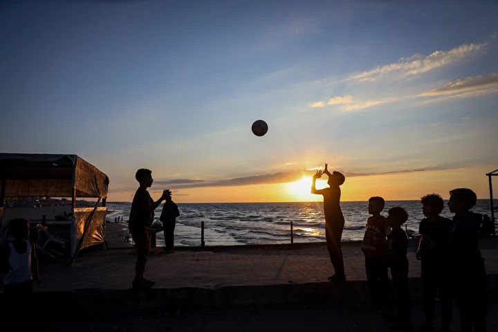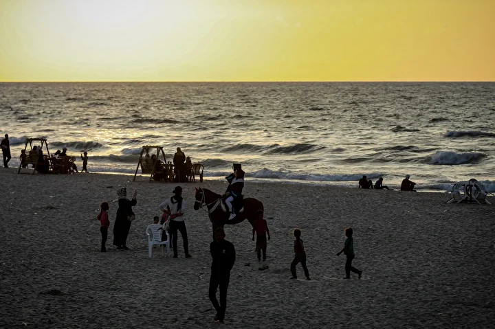 Abluka altındaki Gazze Şeridi’nin orta Gazze kenti sahil bölgesinde gün batımında, Filistinliler tüm zorluklara rağmen günlük yaşamlarını sürdürmeye çalışıyor.