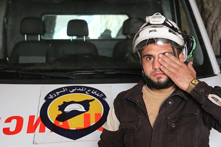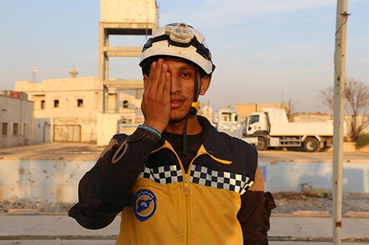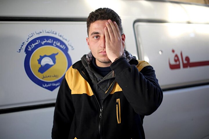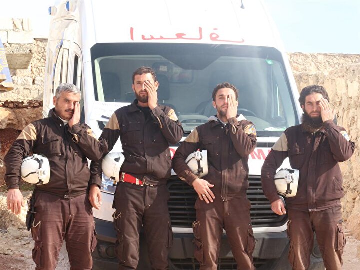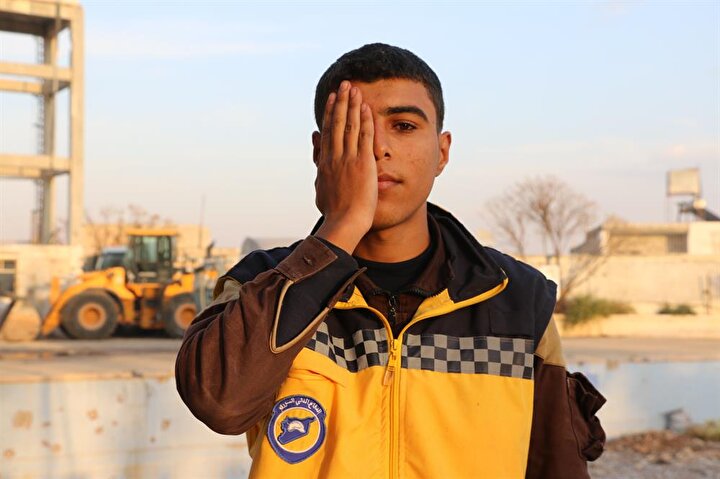 İdlib'in Han Şeyhun ilçesindeki sivil savunma ekipleri, Beşşar Esed rejiminin kuşatmasındaki Doğu Guta'da annesini ve tek gözünü kaybeden Kerim bebekle dayanışma için, tek gözlerini kapatarak başlatılan kampanyaya destek verdi.