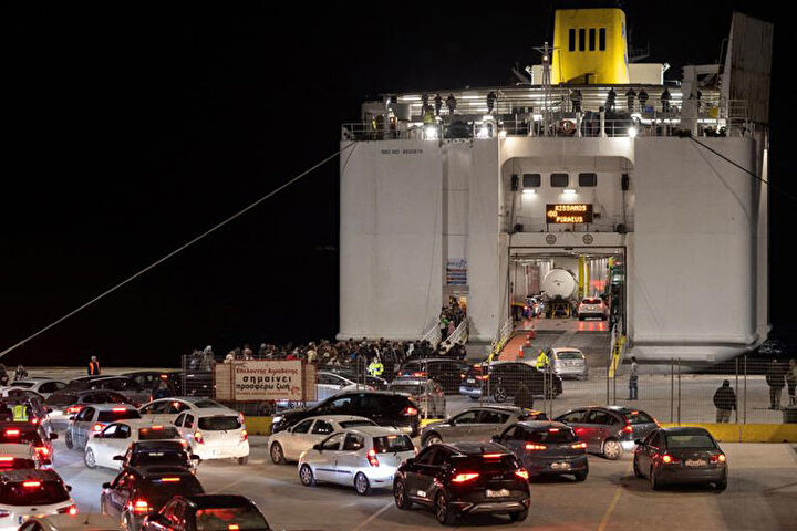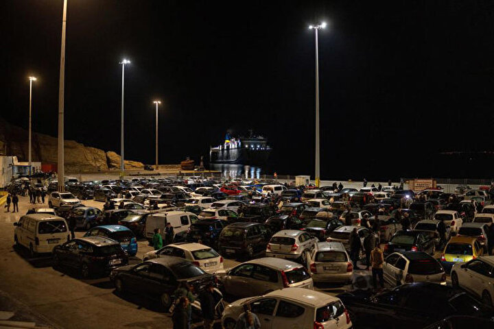 Yunanistan'ın Santorini Adası'nda 4 Şubat 2025 tarihinde meydana gelen depremlerin ardından insanlar adadan ayrılmak için sıraya girdi.