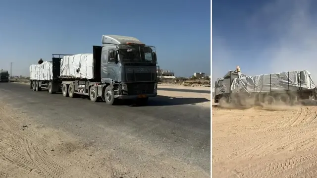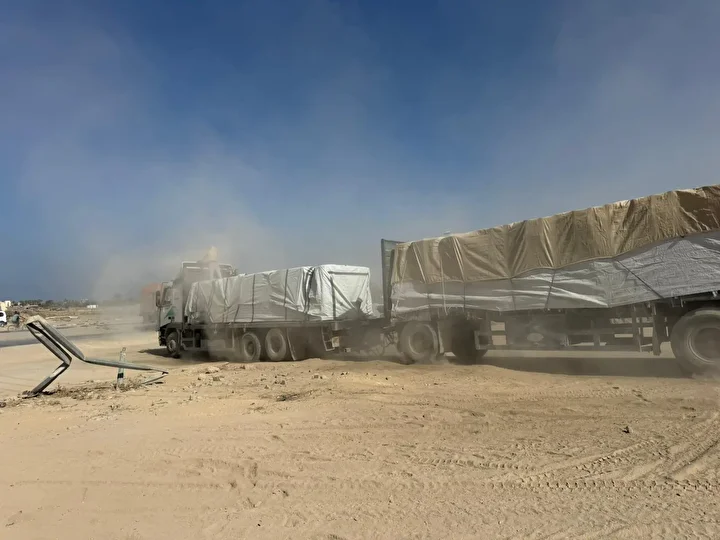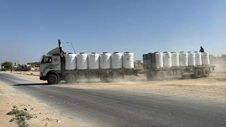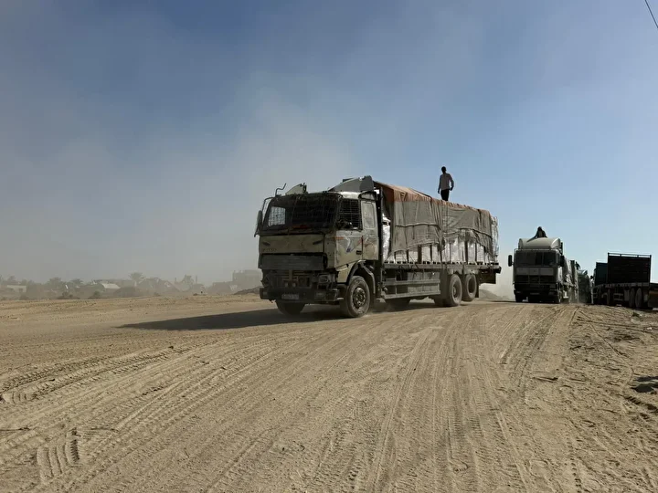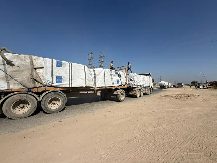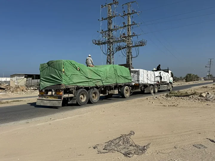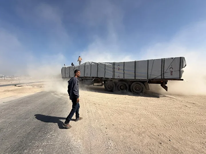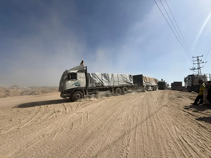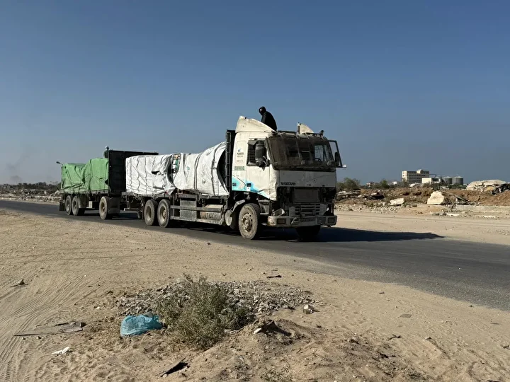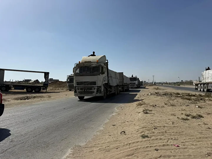 İsrail ile Hamas arasında yapılan ateşkes anlaşması kapsamında, Gazze Şeridi'ne yardım tırlarının girişi sürüyor. Gıda ve akaryakıt yardımı taşıyan tırlar, Birleşmiş Milletler'e bağlı uluslararası kuruluşların gözetiminde, Gazze'deki Kissufim Sınır Kapısı üzerinden Gazze Şeridi'nin doğu kesiminde yer alan Deyr Balah'a ulaştı.
