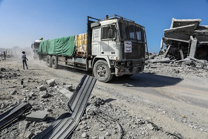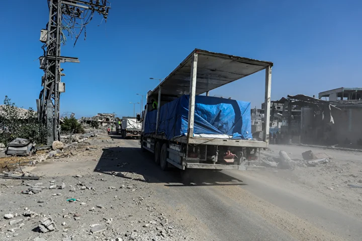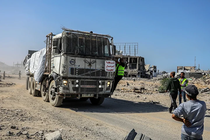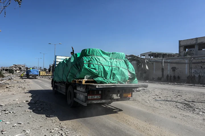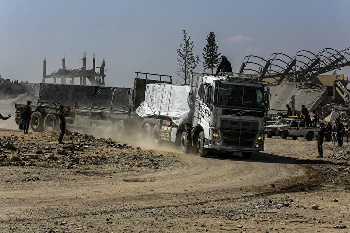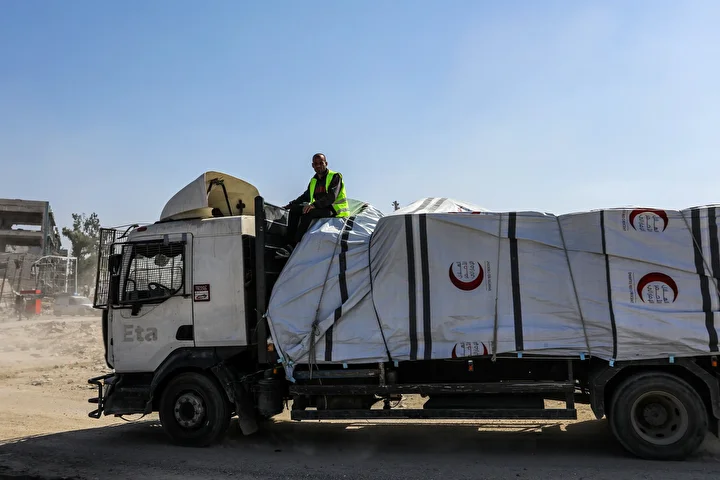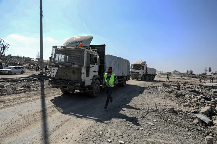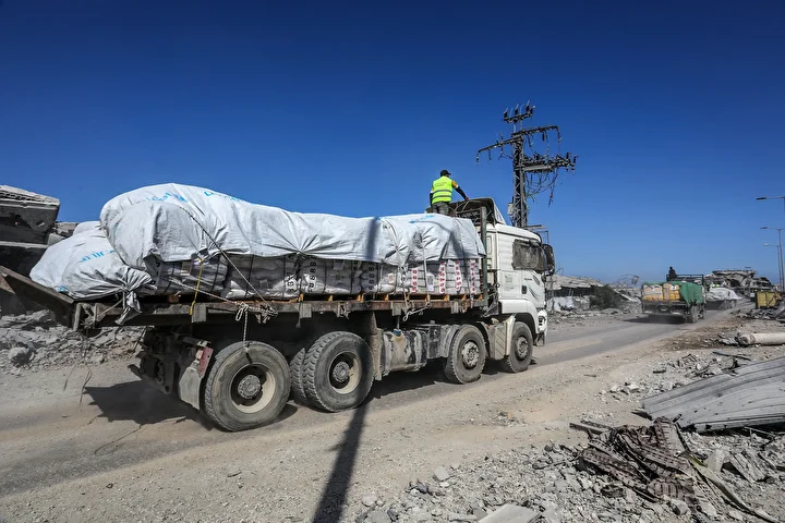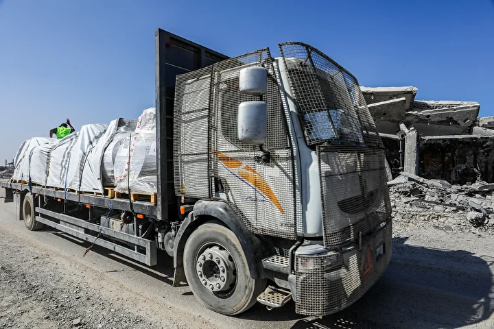 İsrail ve Hamas'ın Gazze'de ateşkes ve esir takası anlaşmasını sağlamasının ardından Gazze Şeridi’ne kısıtlı miktarda insani yardım ulaştırılmaya devam ediyor. Dünya Gıda Programı (WFP) organizasyonuna ait gıda ve tıbbi malzeme taşıyan yardım tırları Kerem Ebu Salim (Kerem Şalom) Sınır Kapısı’ndan, Gazze’ye giriş yaptı.