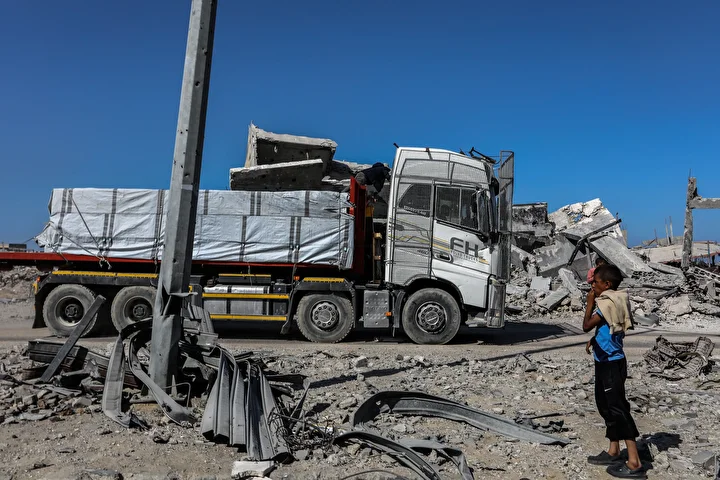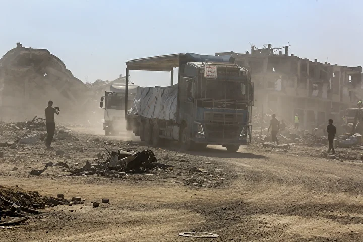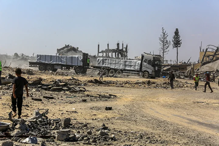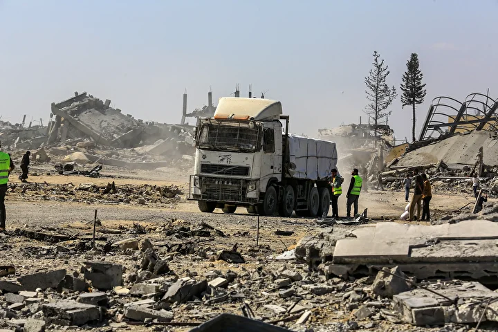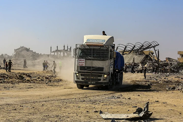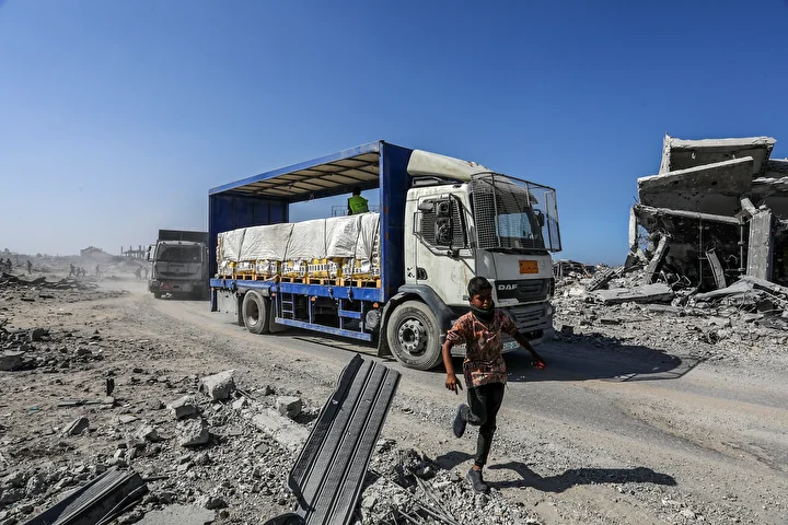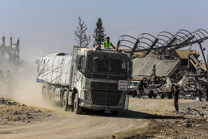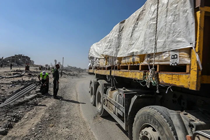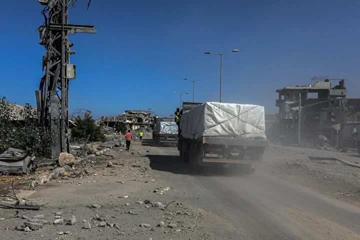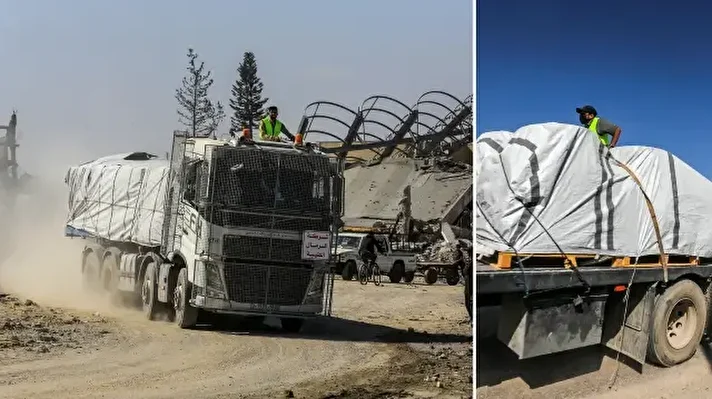 İsrail ve Hamas'ın Gazze'de ateşkes ve esir takası anlaşmasını sağlamasının ardından Gazze Şeridi’ne kısıtlı miktarda insani yardım ulaştırılmaya devam ediyor. Dünya Gıda Programı (WFP) organizasyonuna ait gıda ve tıbbi malzeme taşıyan yardım tırları Kerem Ebu Salim (Kerem Şalom) Sınır Kapısı’ndan, Gazze’ye giriş yaptı.