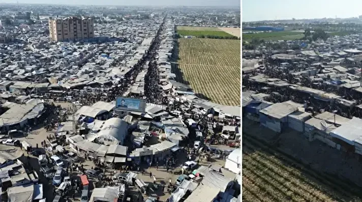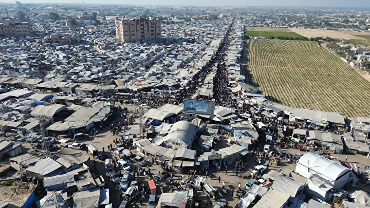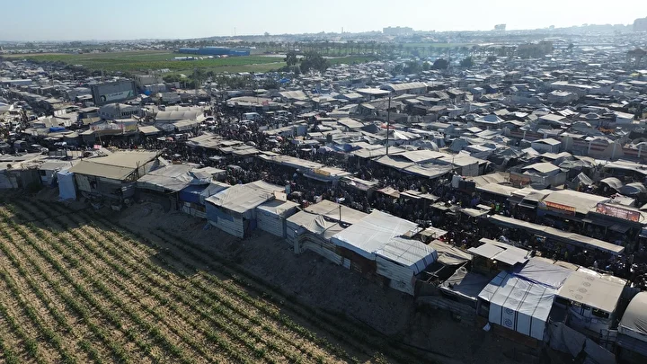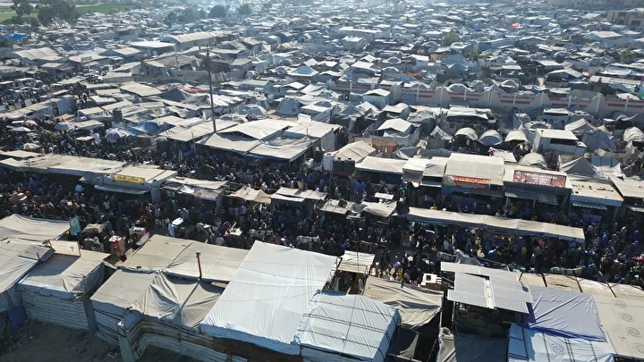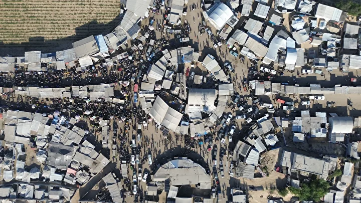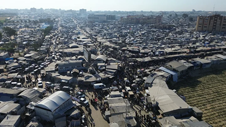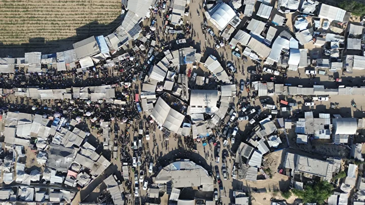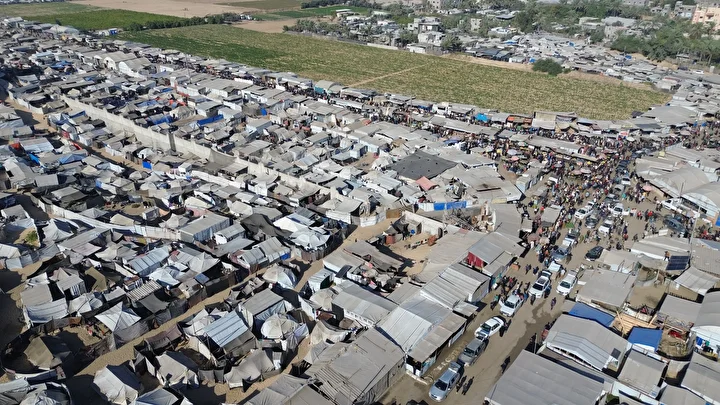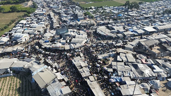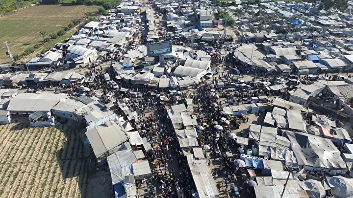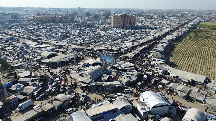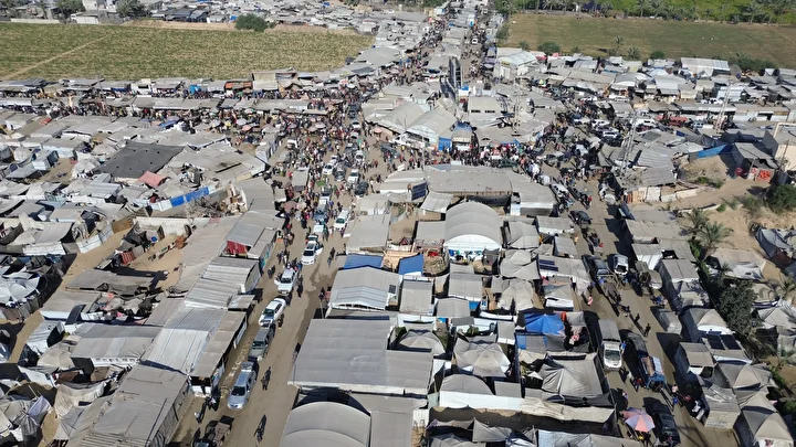 İsrail ile Hamas arasında varılan ateşkesin yürürlüğe girmesi ve İsrail ordusunun geri çekilmesinin ardından Gazze Şeridi’ndeki çarşılarda yeniden hareketlilik başladı. Gazze Şeridi'nin güneyindeki Han Yunus’a bağlı Mevasi bölgesinde yerinden edilen Filistinliler, çadırlarının arasında kurulan pazardan alışveriş yaptı.