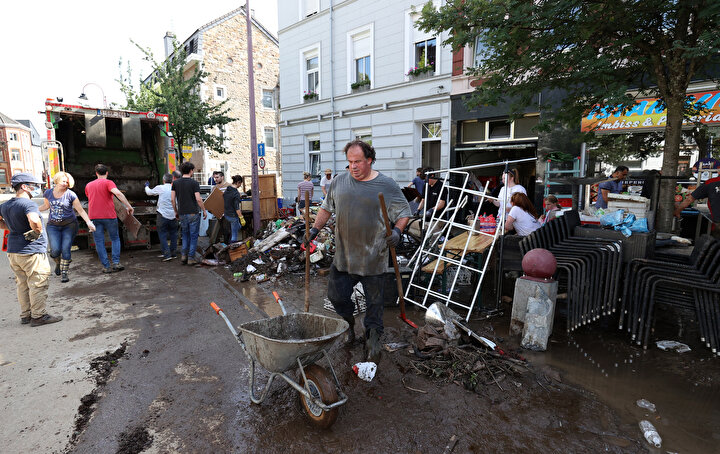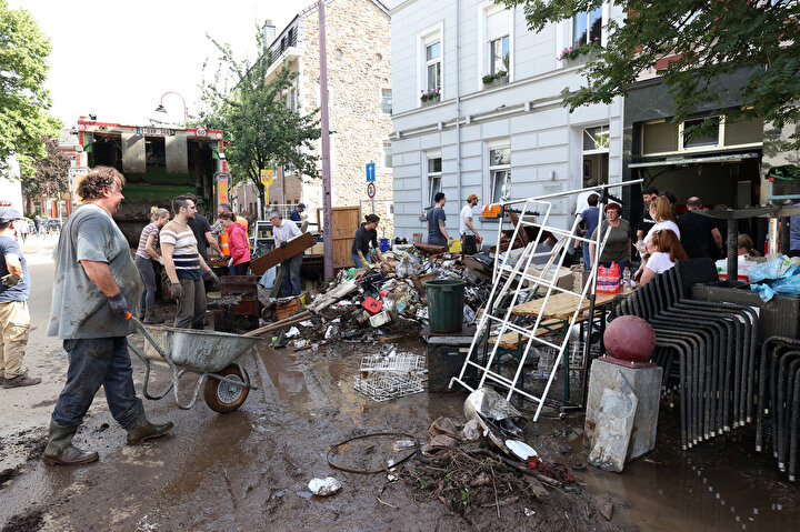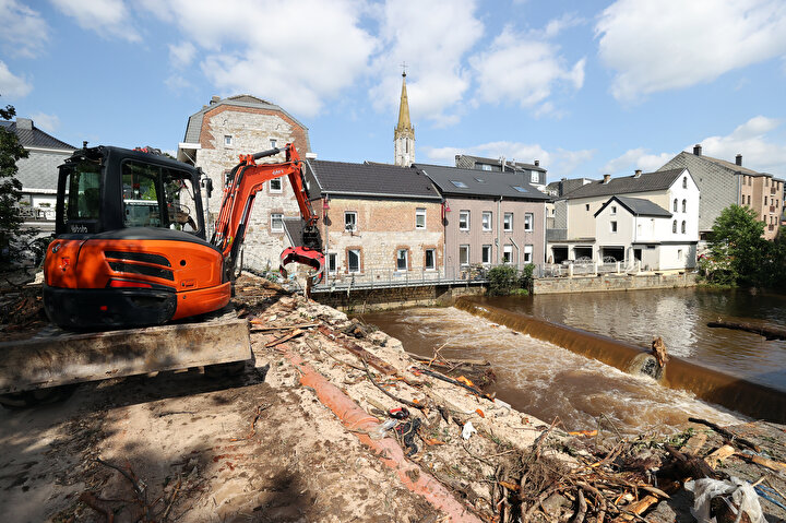 Belçika'da meydana gelen sel felaketinden etkilenen kentlerde hasar tespit ve onarım çalışmaları yapılıyor.