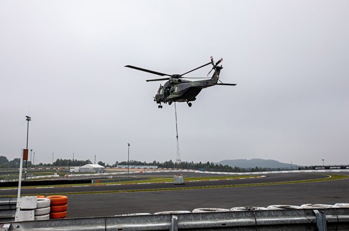 Askeri araçlarla gıda ve temel ihtiyaç malzemeleri dağıtılıyor.