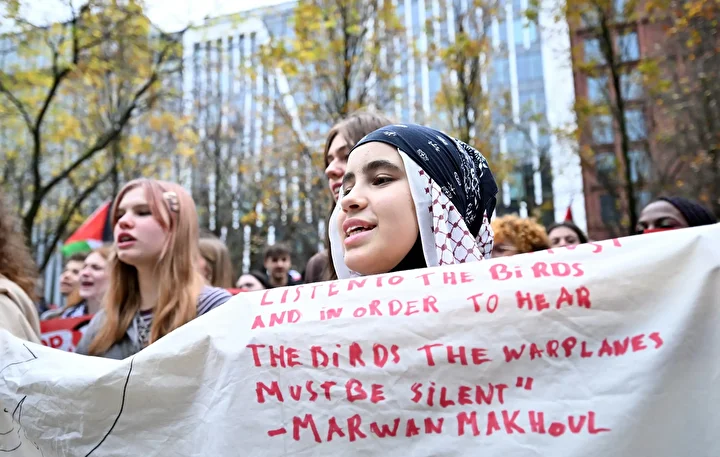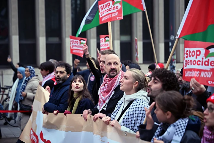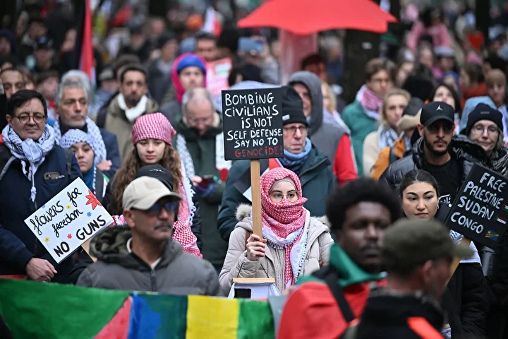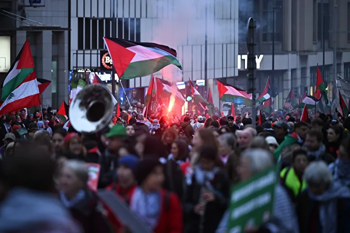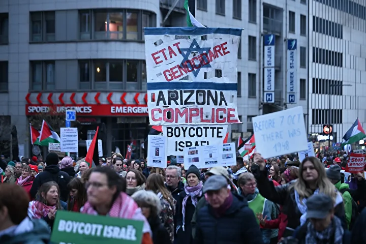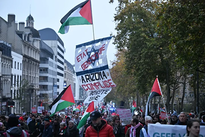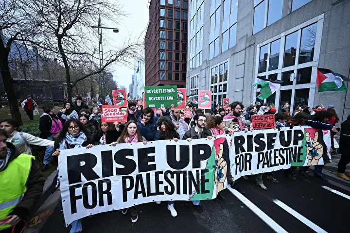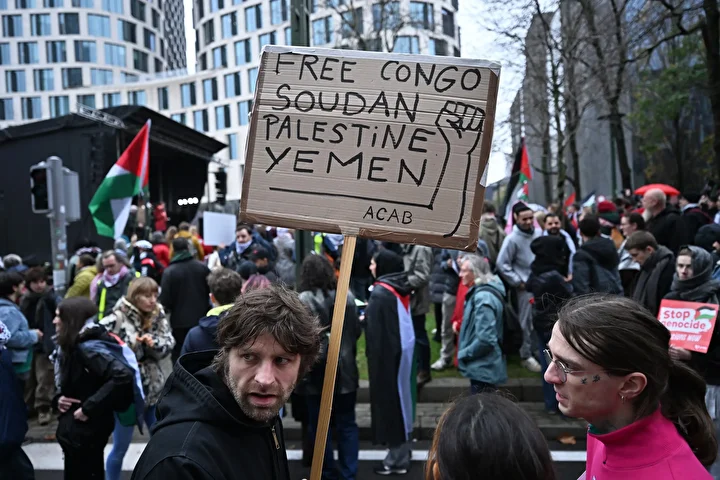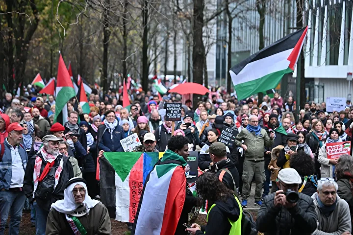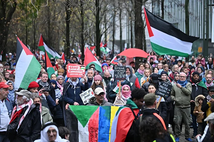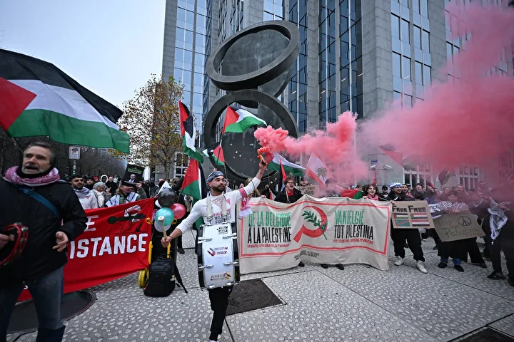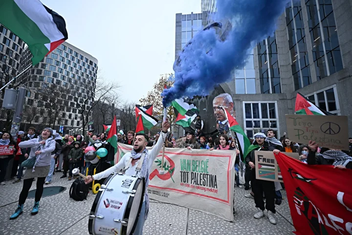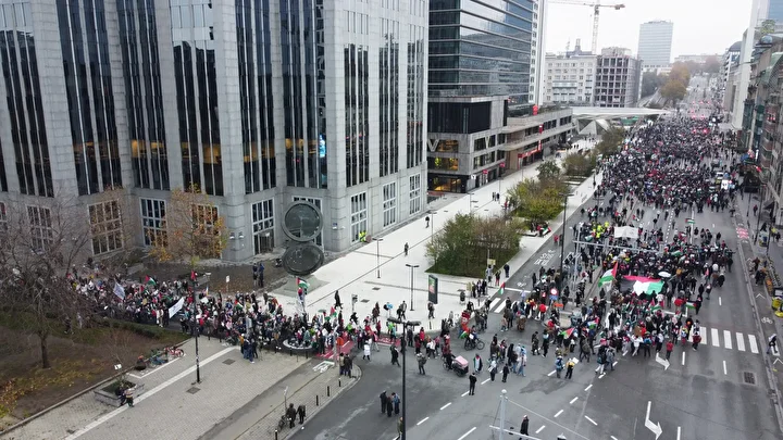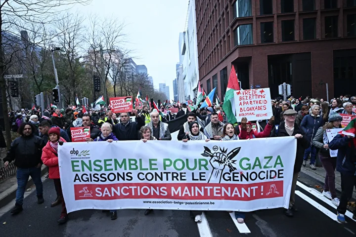 Belçika'nın başkenti Brüksel’de Kuzey Tren istasyonu (Gare du Nord) önünde bir araya gelen binlerce gösterici, Avrupa Birliği ile İsrail arasındaki ortaklık anlaşmasının derhal askıya alınması, Belçika hükümetinden, İsrail'e kapsamlı bir askeri ambargo uygulanması ve İsrail'in ateşkesi ihlal ederek Gazze'ye saldırılarını protesto etti.