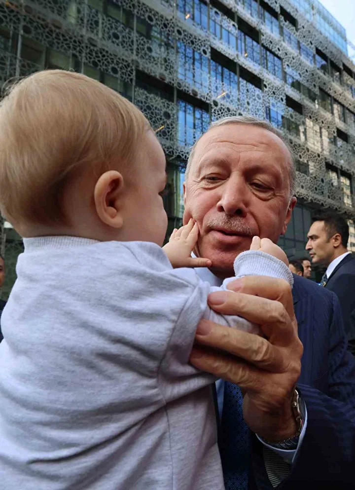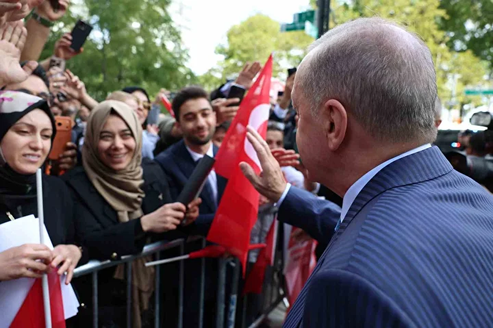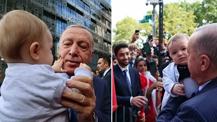 Cumhurbaşkanı Recep Tayyip Erdoğan, New York’ta bulunan Türkevi’ne gelişi sırasında Türk vatandaşları tarafından coşkuyla karşılandı. "Erdoğan" sloganları atan Türk vatandaşları, Erdoğan ile hatıra fotoğrafı çektirdi. Erdoğan, kalabalık arasında bulunan Mahir isimli bebeği kucağına alarak sevdi.