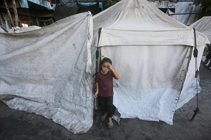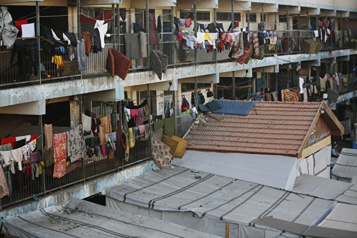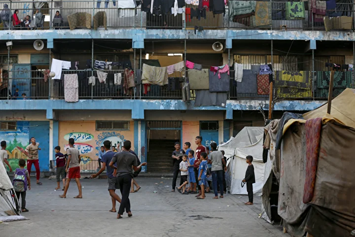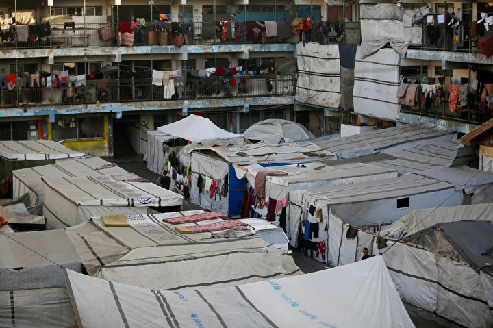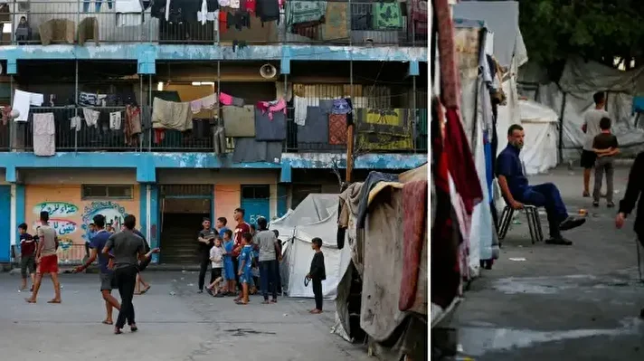 İsrail saldırılarında evlerini kaybeden veya kalacak yer bulamayan Filistinli aileler, Gazze Şeridi’nin orta kesimindeki Deyr Belah kentinde bulunan UNRWA’ya ait bir okula sığındı. Okul binasında kalan Filistinliler, zor şartlar altında yaşamlarını sürdürüyor.
