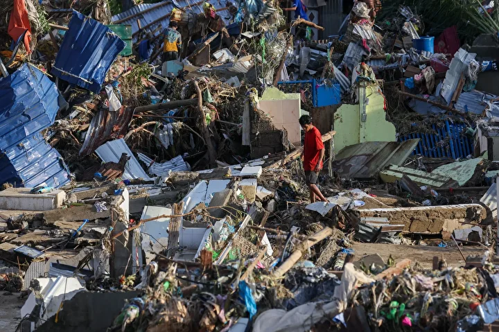 Filipinler'in Cebu eyaletindeki Talisay kentinde, Kalmaegi tayfununun neden olduğu sel nedeniyle sayısız ev enkaza dönüştü. Tino olarak da bilinen güçlü Kalmaegi tayfunu, 4 Kasım'da şiddetli yağmurlar ve güçlü rüzgarlarla karaya ulaştıktan sonra, felaket getiren yıkımlar yaşattı ve en az 66 kişinin ölümüne neden olduğu biliniyor. Tayfun, özellikle Cebu ve Leyte olmak üzere, adaların birçok bölgesinde sel baskınlarına neden oldu. Arama urtarma ve yardım çalışmaları, ülkenin afet bölgelerinde devam ediyor. Küresel iklim değişikliğinin kötüleşmesi nedeniyle, bu yıl Güneydoğu Asya ülkesini vuran 20. tayfun oldu.