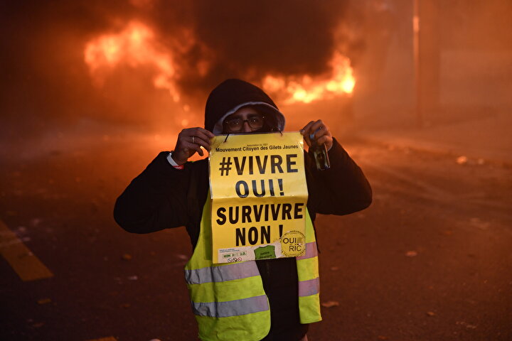 Başkent Paris'in yakın banliyölerinden Les Lilas'da toplanan eylemciler, "Macron istifa" ve "özgürlük" sloganları attı.