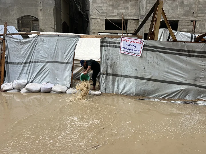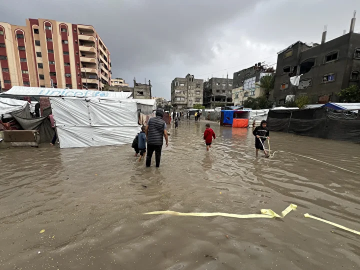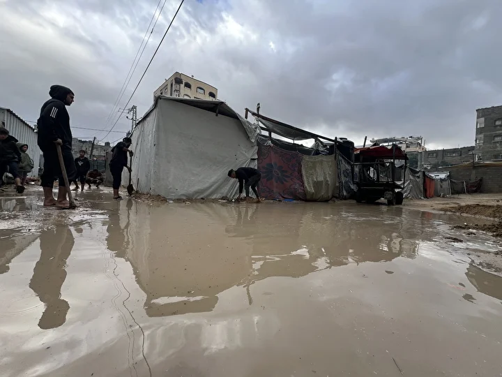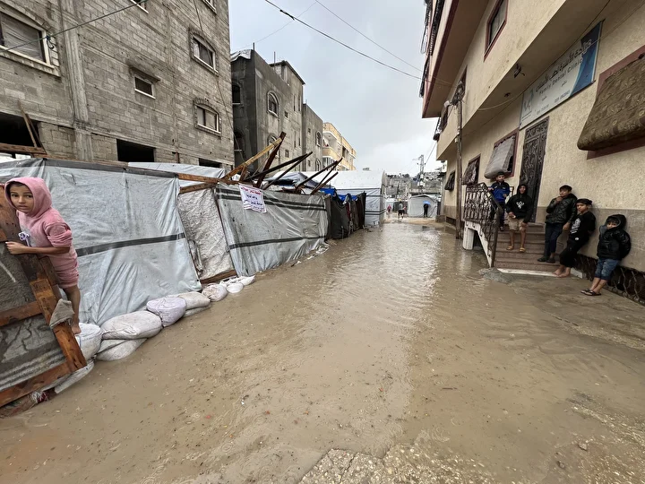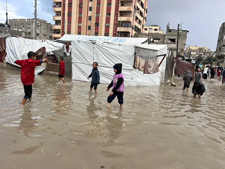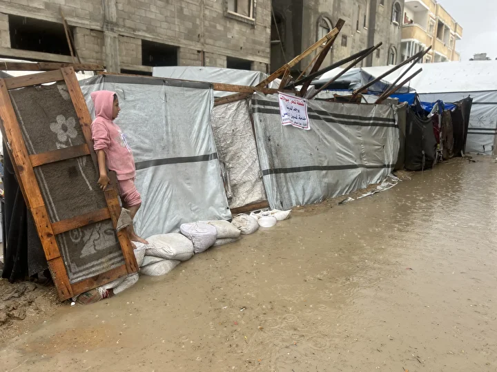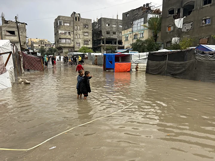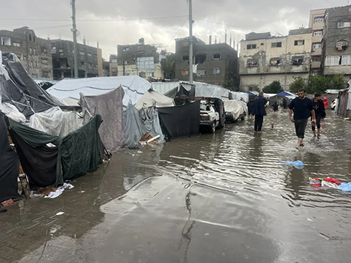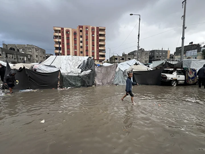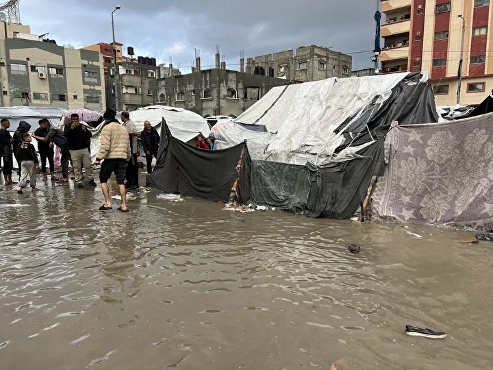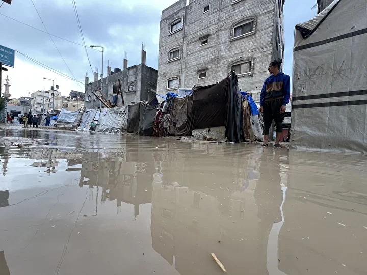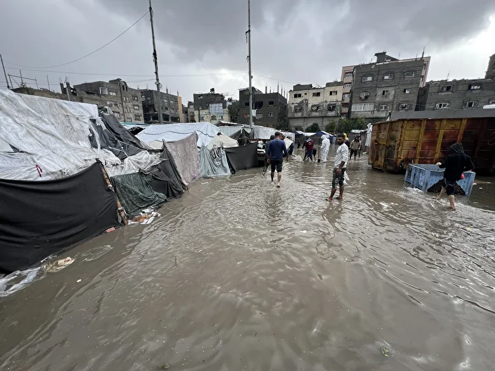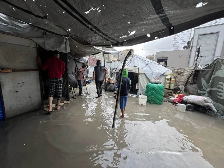 Abluka altındaki Gazze Şeridi’nin orta kesiminde bulunan Nuseyrat Mülteci Kampı’nda sağanak yağış sebebiyle birçok çadırı su bastı. Yağış nedeniyle su ve çamur birikintilerinin oluştuğu bölgede, yerinden edilmiş pek çok aile barınma imkânlarının yetersizliği sonucu derme çatma çadırlarda yaşam mücadelesi veriyor.