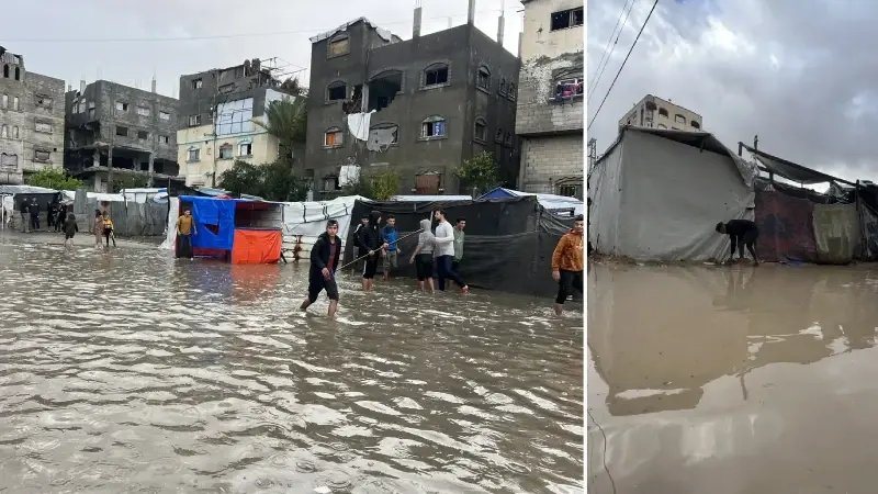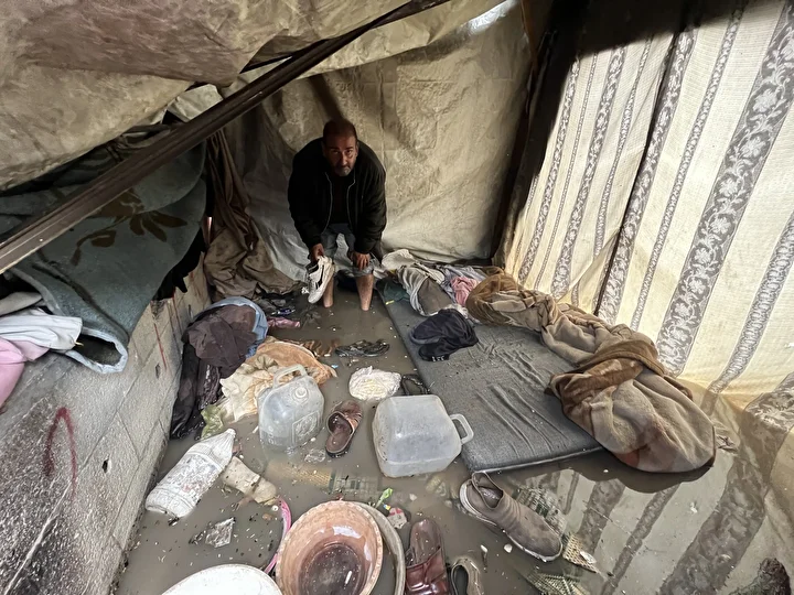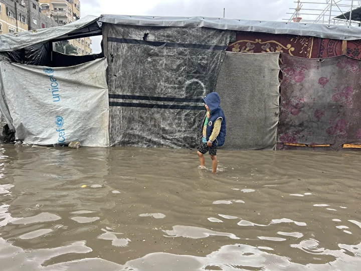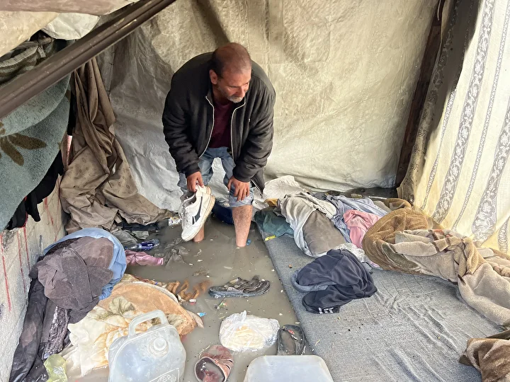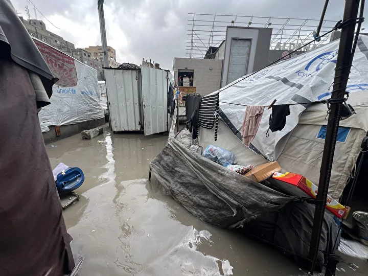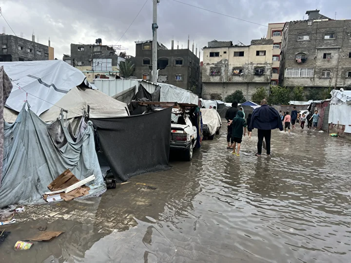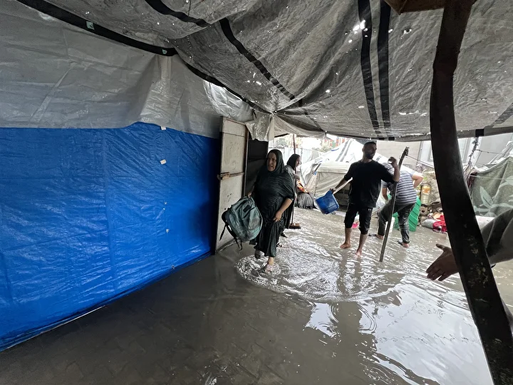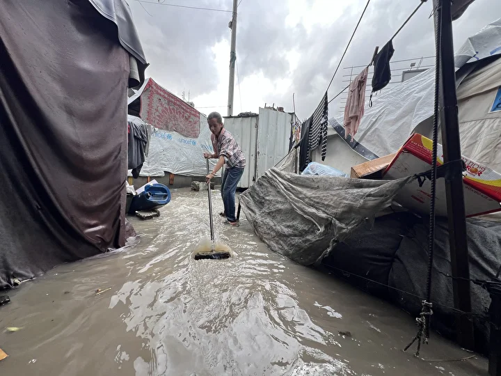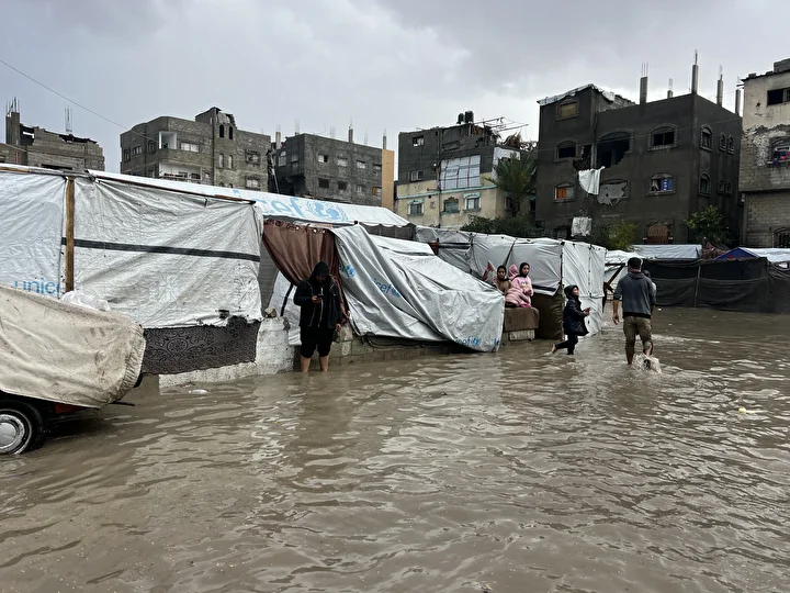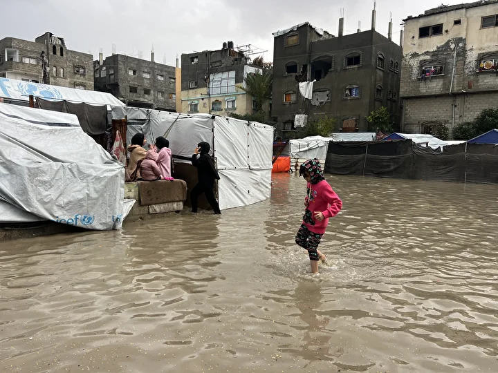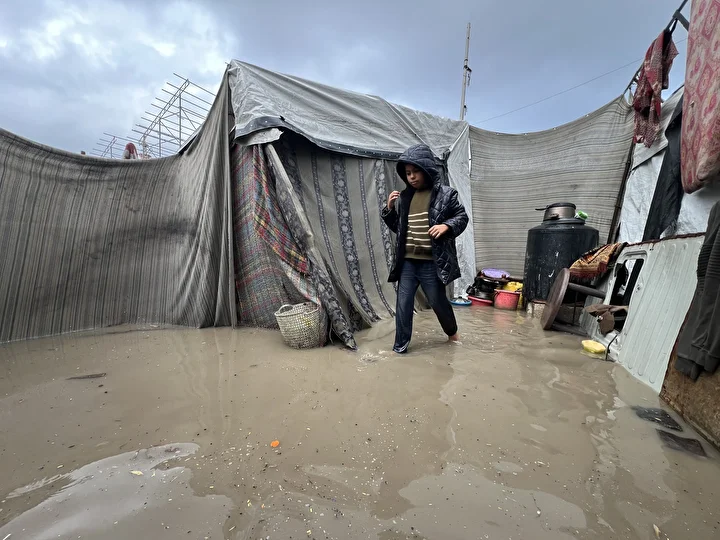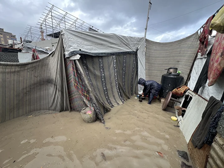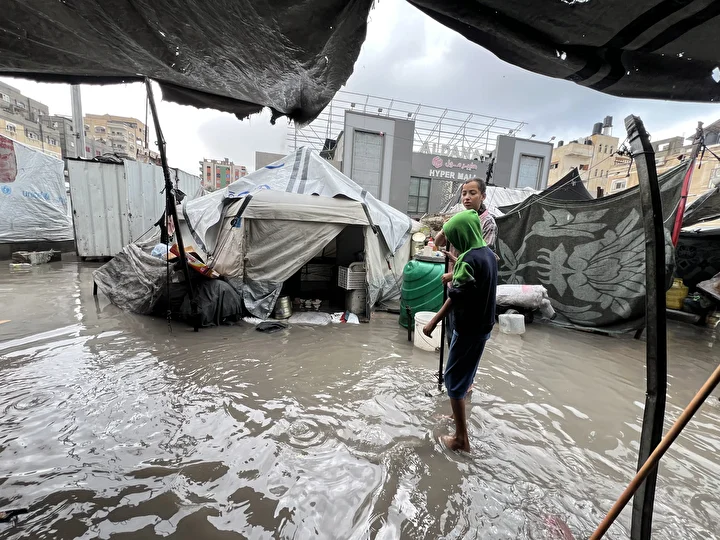 Abluka altındaki Gazze Şeridi’nin orta kesiminde bulunan Nuseyrat Mülteci Kampı’nda sağanak yağış sebebiyle birçok çadırı su bastı. Yağış nedeniyle su ve çamur birikintilerinin oluştuğu bölgede, yerinden edilmiş pek çok aile barınma imkânlarının yetersizliği sonucu derme çatma çadırlarda yaşam mücadelesi veriyor.
