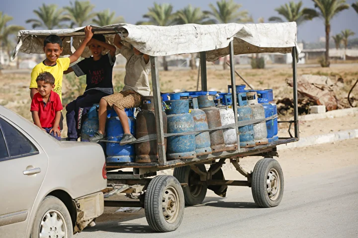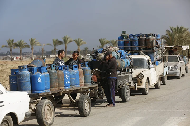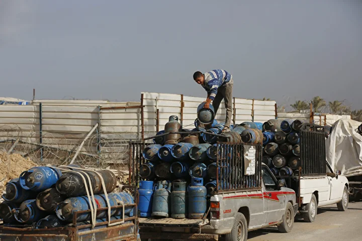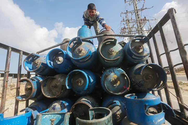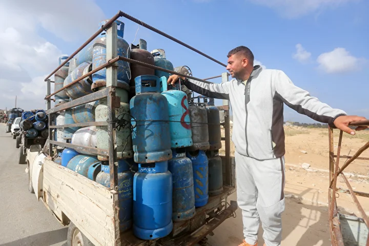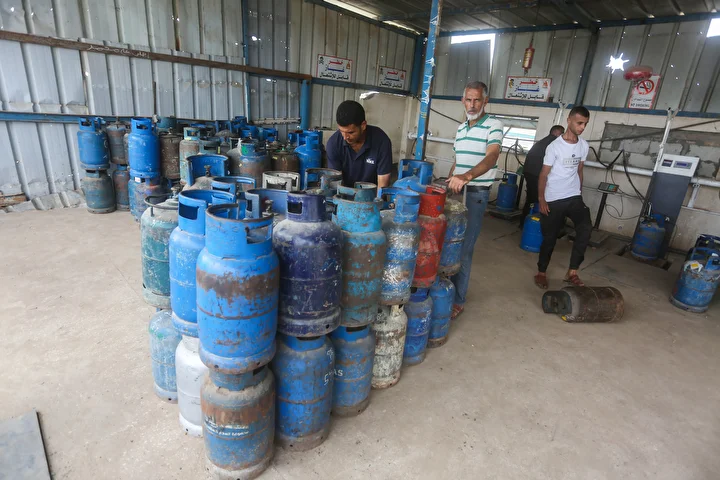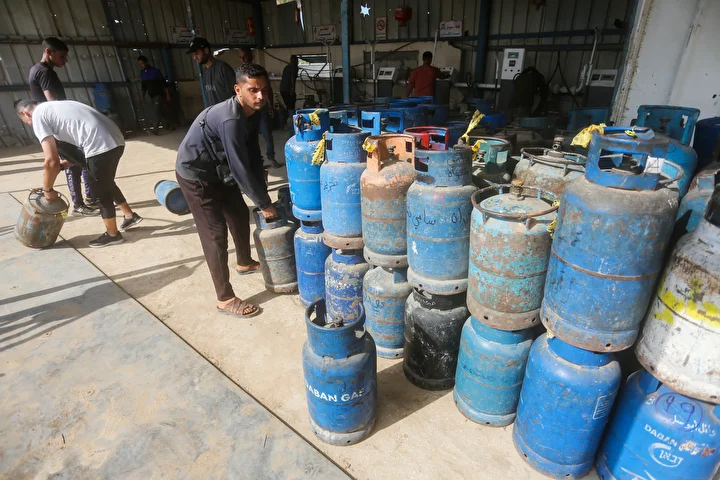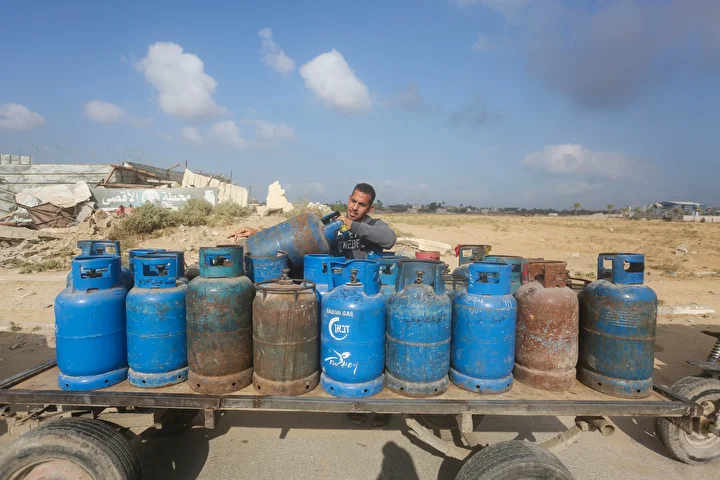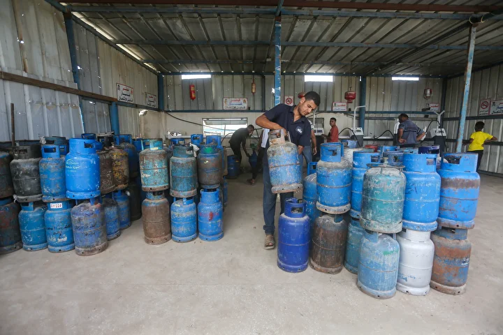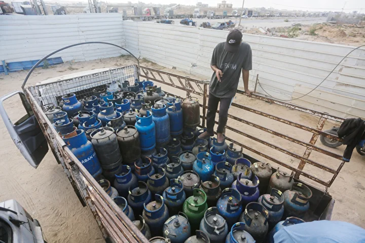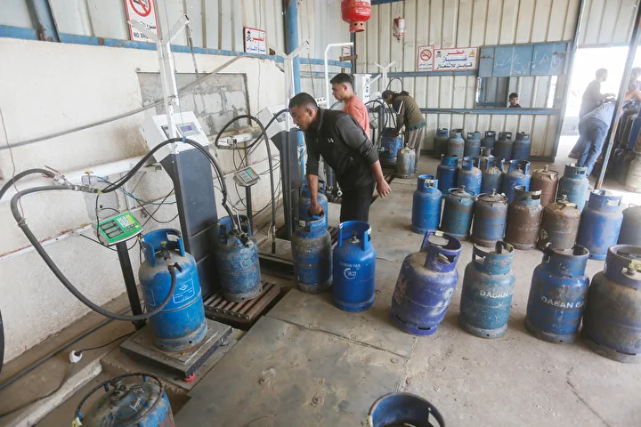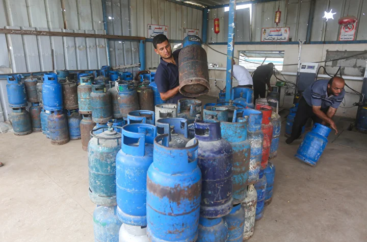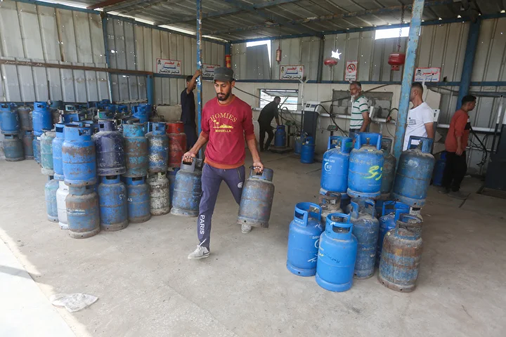 Gazze Şeridi'ne yemek pişirmek için tüp gaz girişine izin vermesinin ardından tüp dolum tesislerinde hareketlilik yaşandı. Deyr Balah kentindeki Filistinliler, mutfak tüpü almak için kuyrukta bekledi.