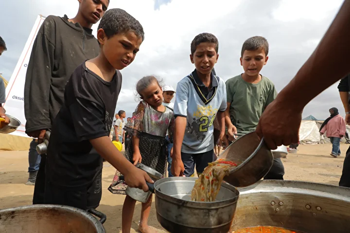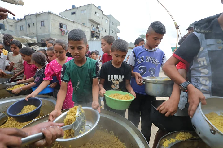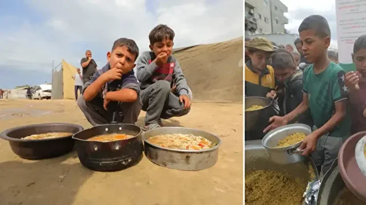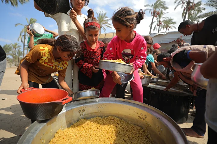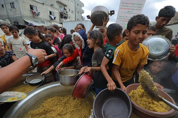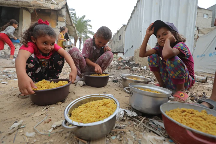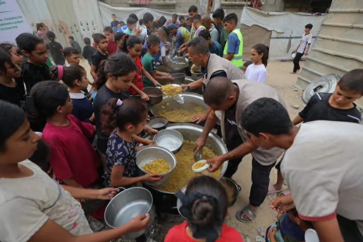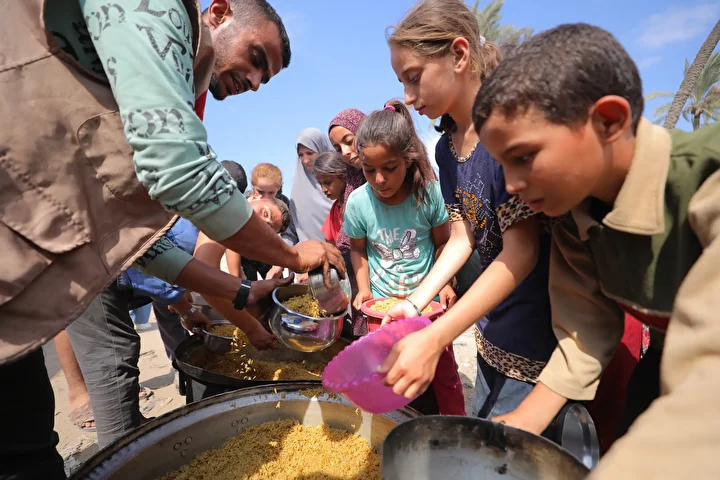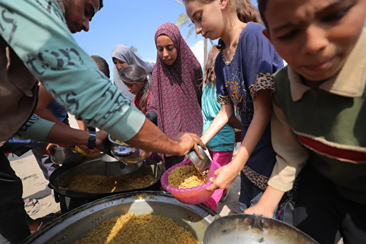 İsrail’in Gazze Şeridi’ne yönelik ablukası ve devam eden saldırıları nedeniyle gıdaya erişimde zorluk yaşayan Filistinlilere, bir hayır kurumu tarafından sıcak yemek dağıtımı yapıldı. Gazze’nin orta kesimindeki Nuseyrat Mülteci Kampı’nda gerçekleştirilen dağıtım sırasında yoğunluk yaşandı.
