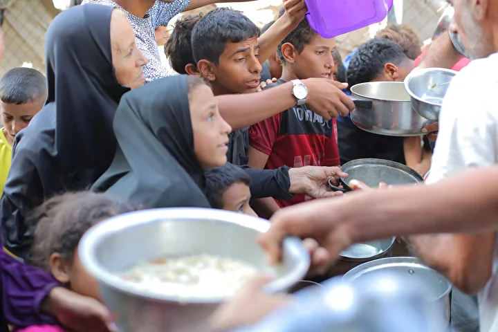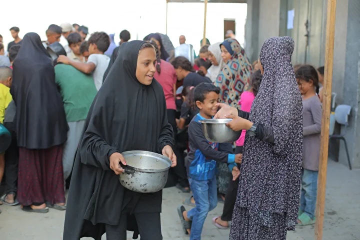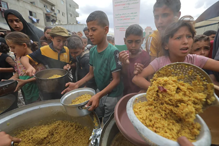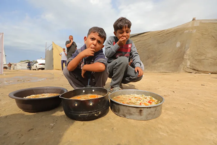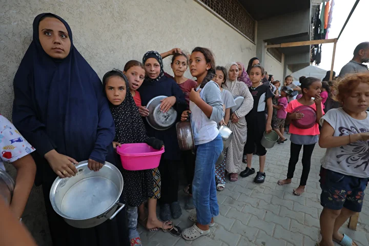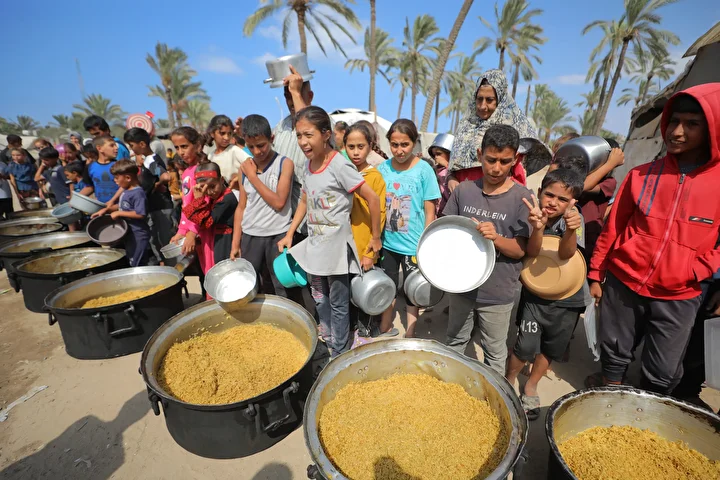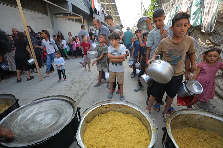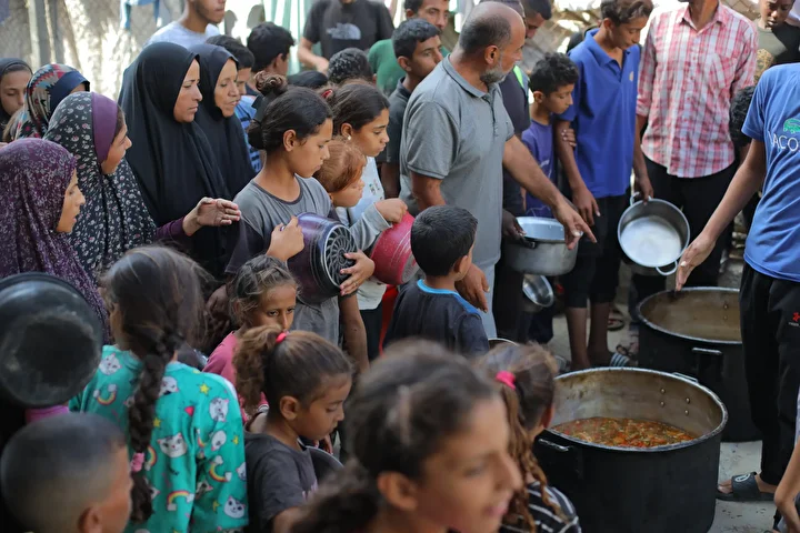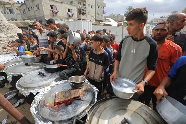 İsrail’in Gazze Şeridi’ne yönelik ablukası ve devam eden saldırıları nedeniyle gıdaya erişimde zorluk yaşayan Filistinlilere, bir hayır kurumu tarafından sıcak yemek dağıtımı yapıldı. Gazze’nin orta kesimindeki Nuseyrat Mülteci Kampı’nda gerçekleştirilen dağıtım sırasında yoğunluk yaşandı.